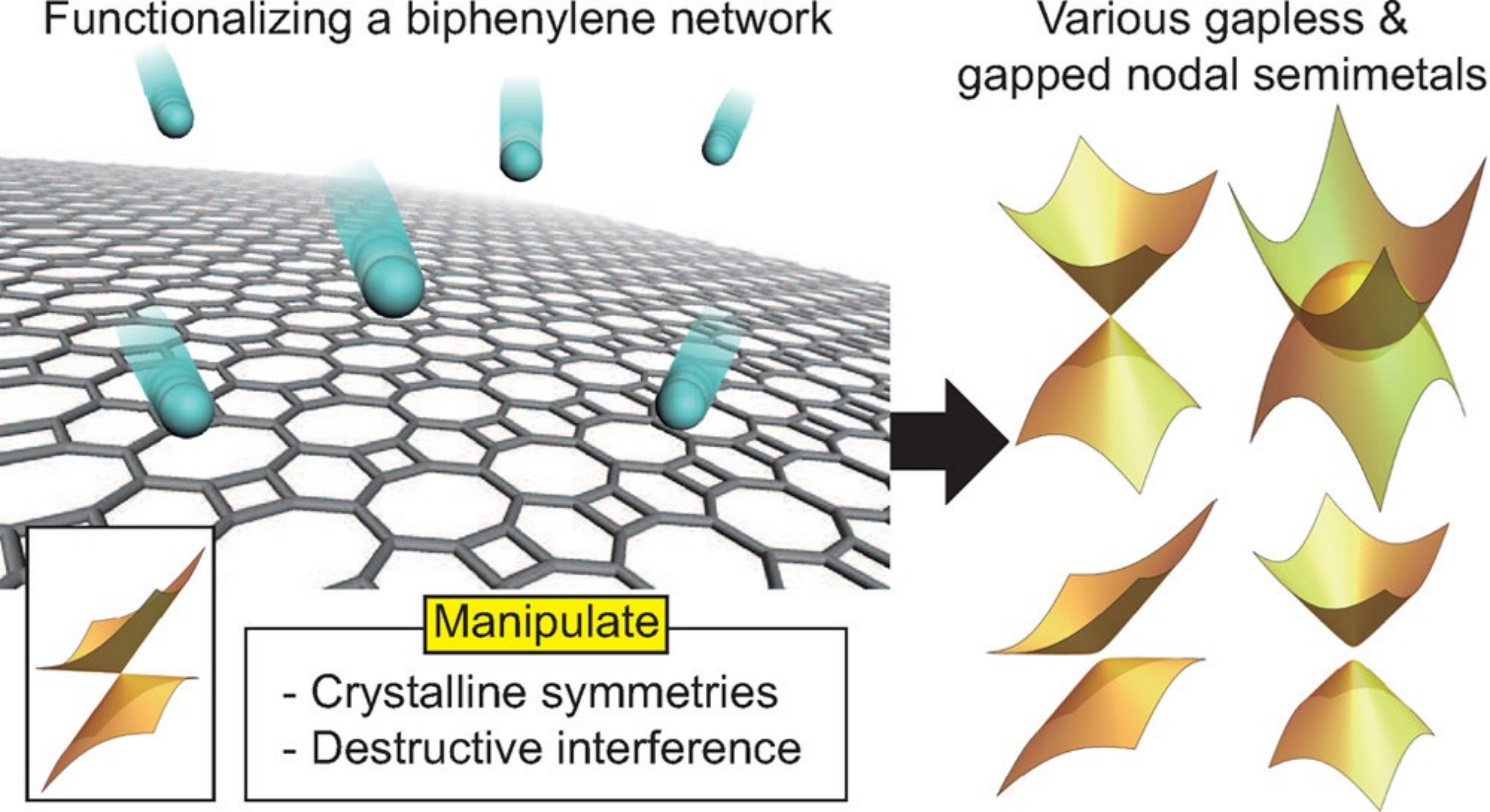 그뿐만 아니라 플루오린 원자(F)의 화학적 기능화를 통해 바이페닐렌 네트웍 물질의 type-II 준금속 특성을 type-I, type-II, nodal line의 새로운 준금속 상태로 자유롭게 변환시킬 수 있음을 발견했다.
