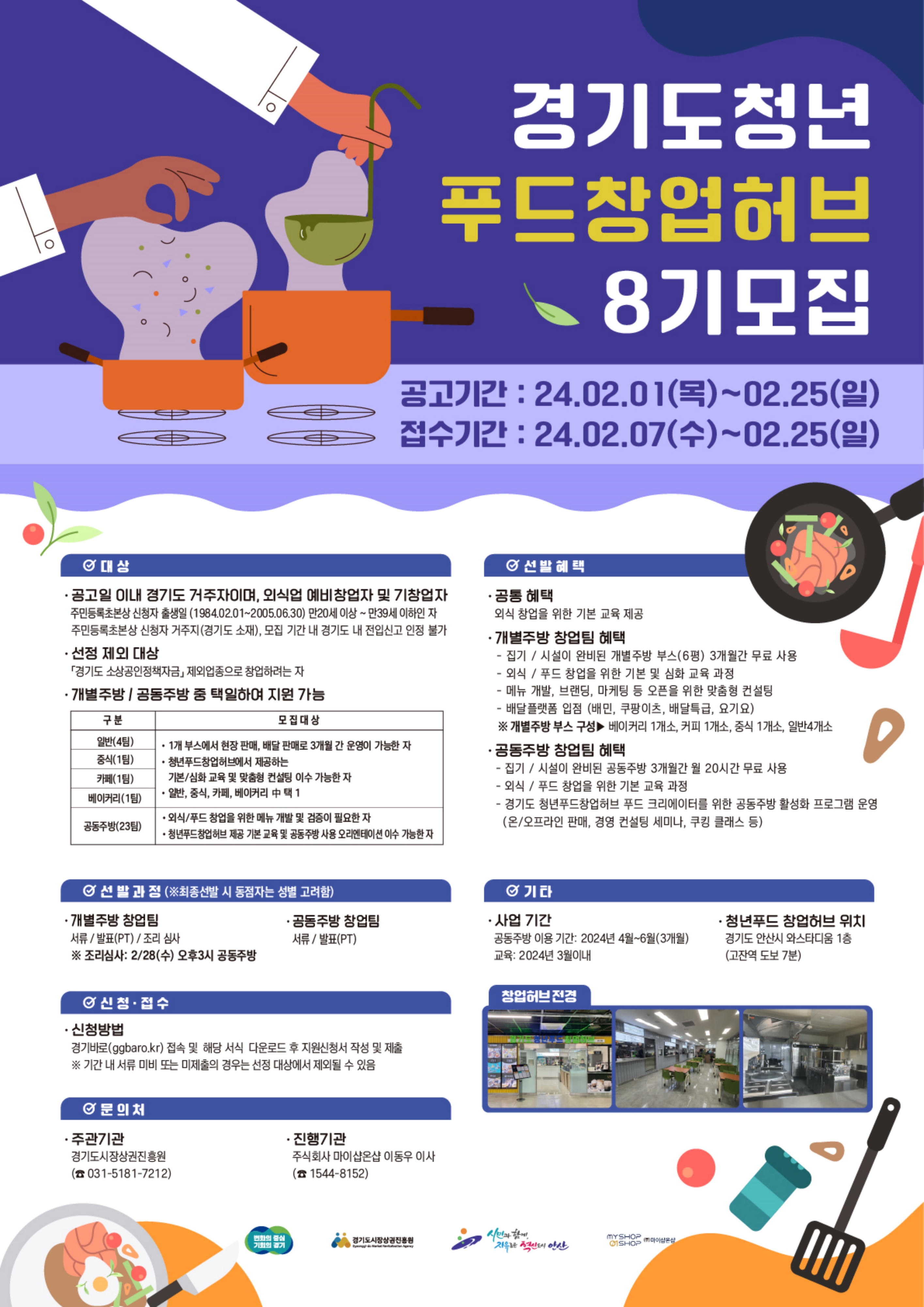 경기도 청년 푸드창업허브 8기 모집이 시작되었습니다.
