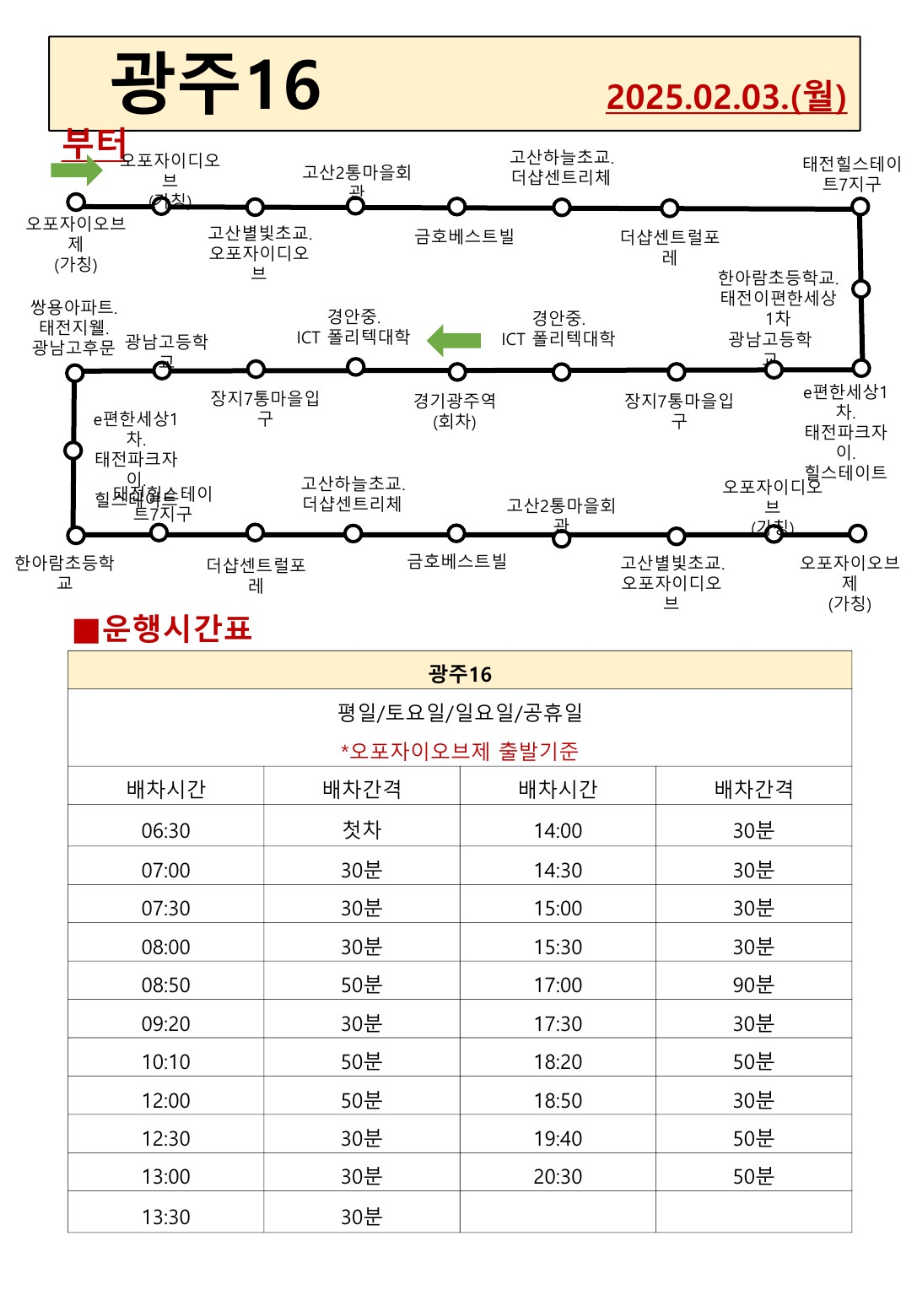 광주 16번은 오포자이오브제를 기점으로 광주역을 경유하는 노선으로 경강선과의 연계를 통해 지역 주민들의 수도권 접근성을 강화하고 대중교통 이용 효율성을 높이고자 신설됐다.
