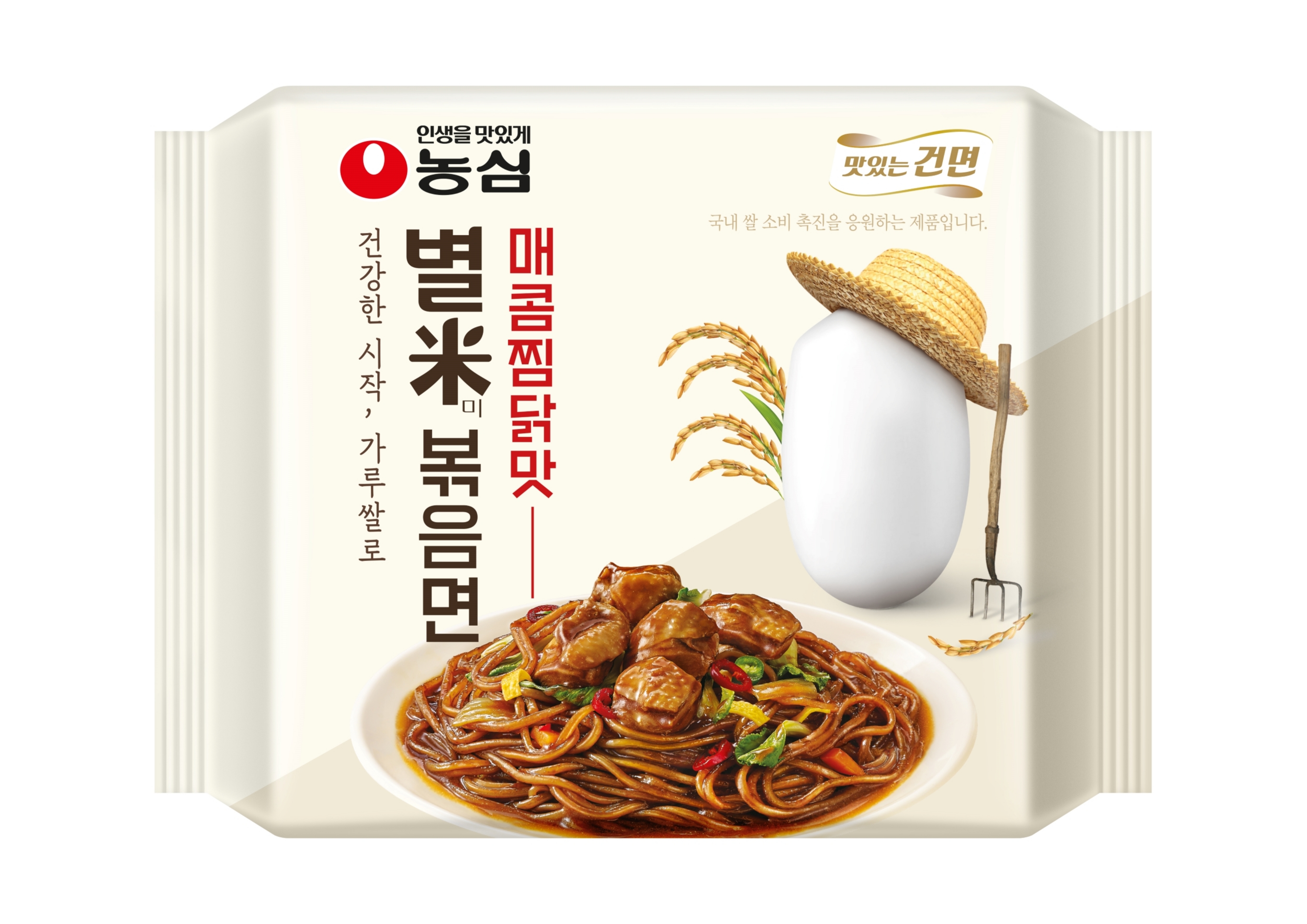 농심이 국산 가루쌀을 활용한 신제품 별미볶음면 매콤찜닭맛을 17일 출시한다.