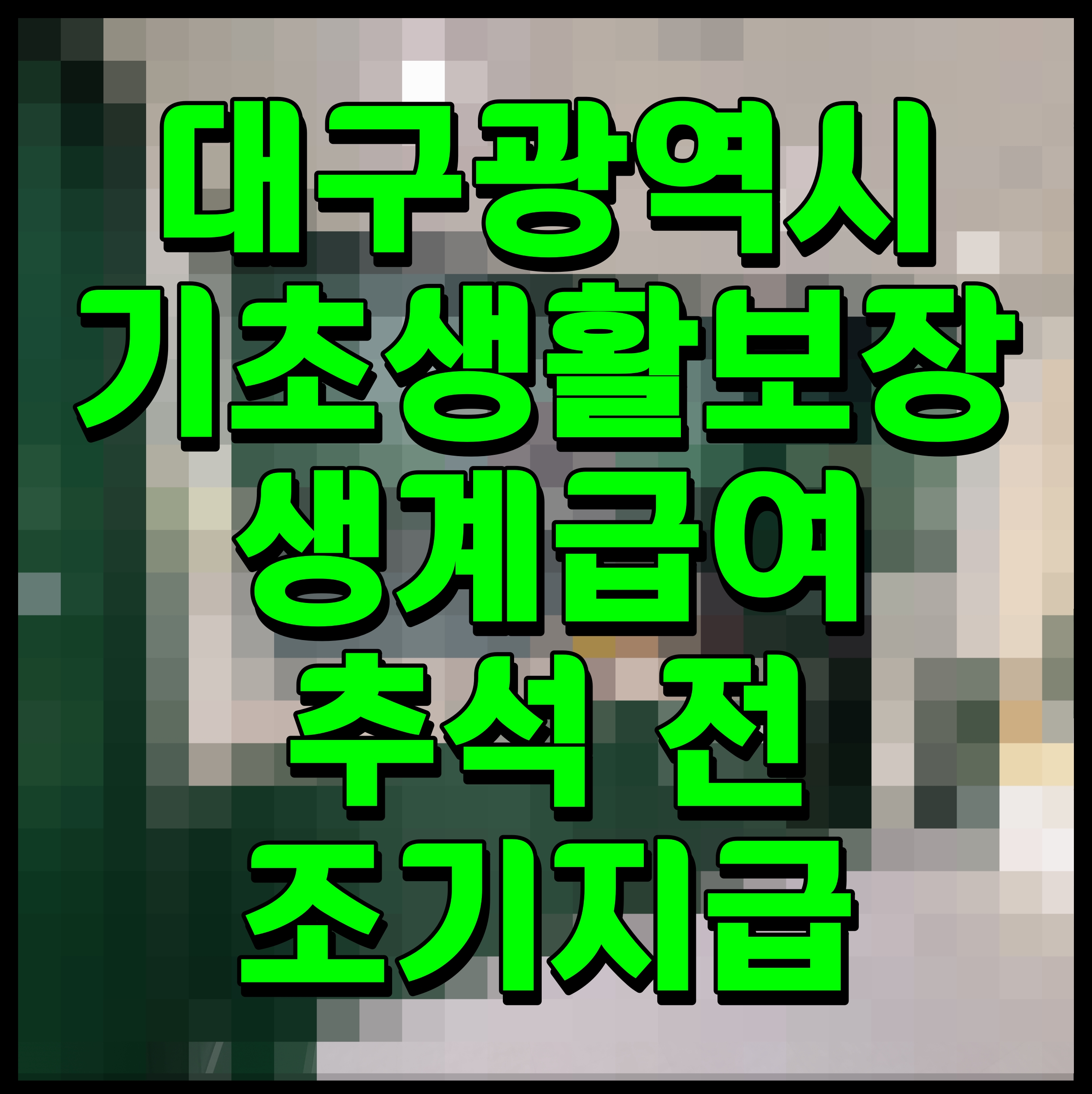 대구광역시는 추석 명절을 앞두고 기초생활보장 수급자들의 경제적 부담을 완화하기 위해 9월 생계급여를 정기지급일보다 일주일 앞당겨서 13일(금)에 지급한다.