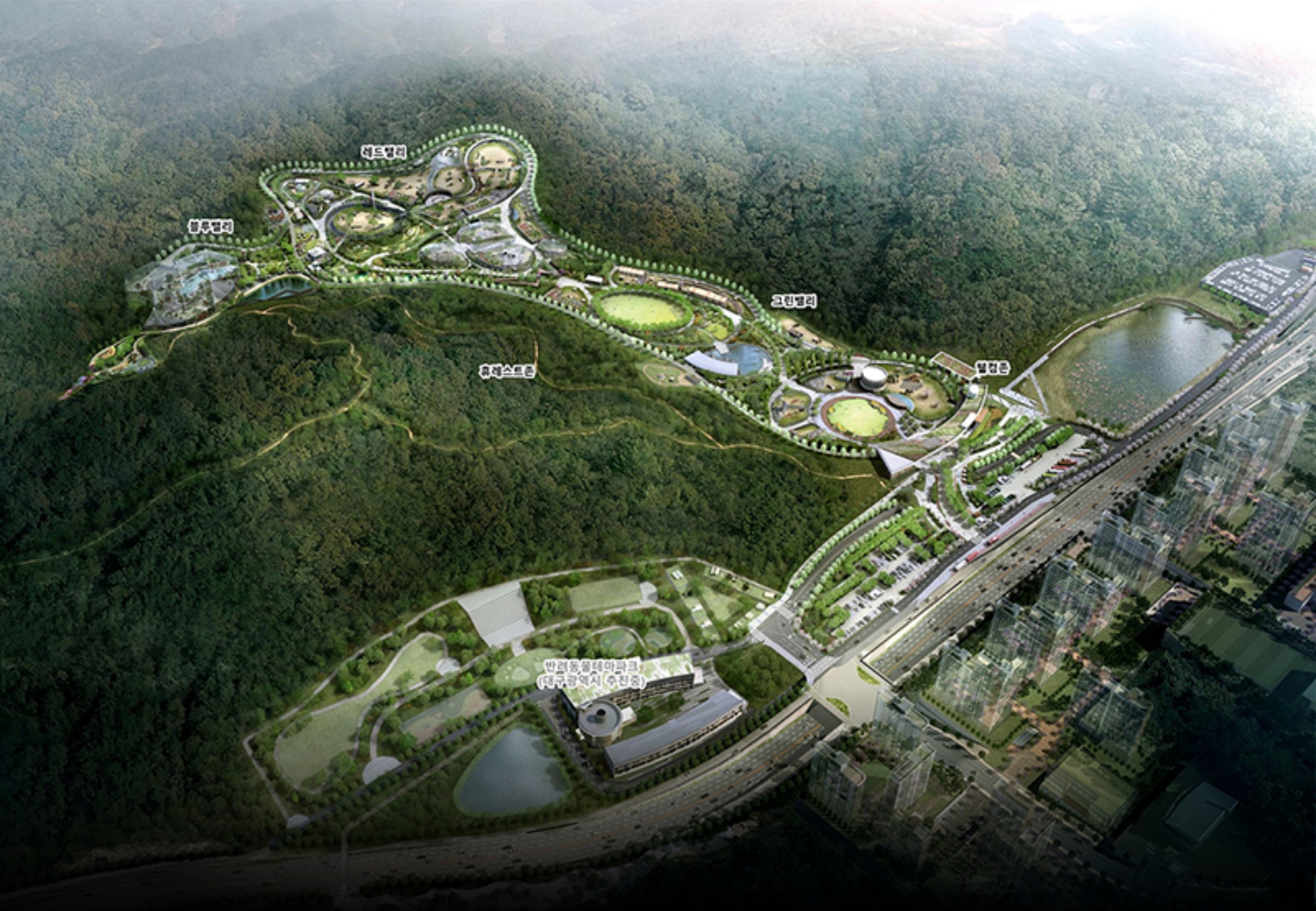 총 사업면적(1,625천㎡) 중 1,350천㎡(83.1%)에는 동물원, 산림레포츠 시설 등 공원시설을, 275천㎡(16.9%)에는 공동주택 3,000세대 등을 비공원시설을 조성하는 사업으로서, 공원시설은 2027년 준공할 예정이다.