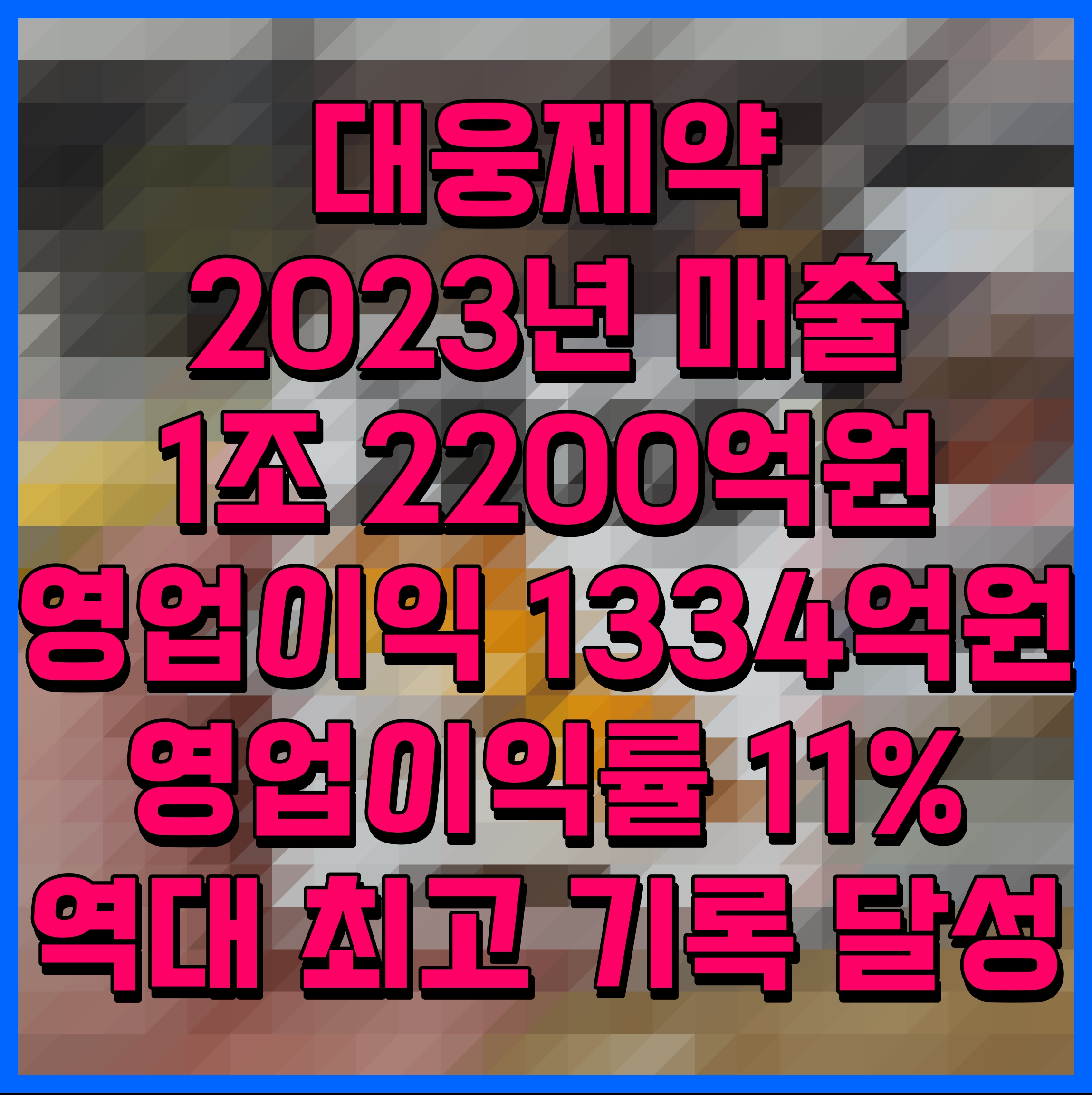 대웅제약 2023년 매출 1조 2200억원 영업이익 1334억원 영업이익률 11% 역대 최고 기록 달성