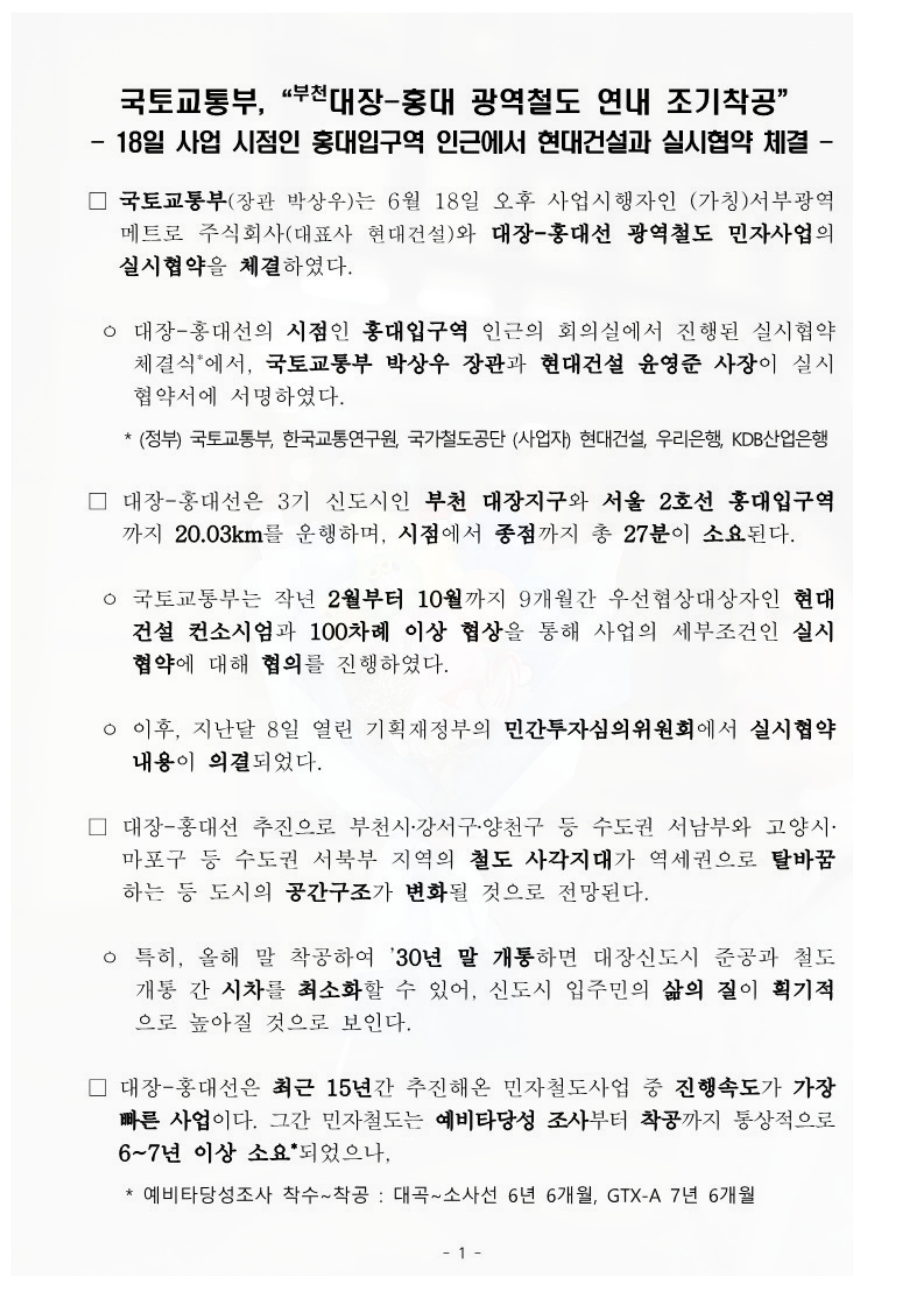 국토교통부가 발표한 부천 대장홍대선 노선도 및 연내 조기 착공과 관련된 내용을 공유해 보겠습니다.