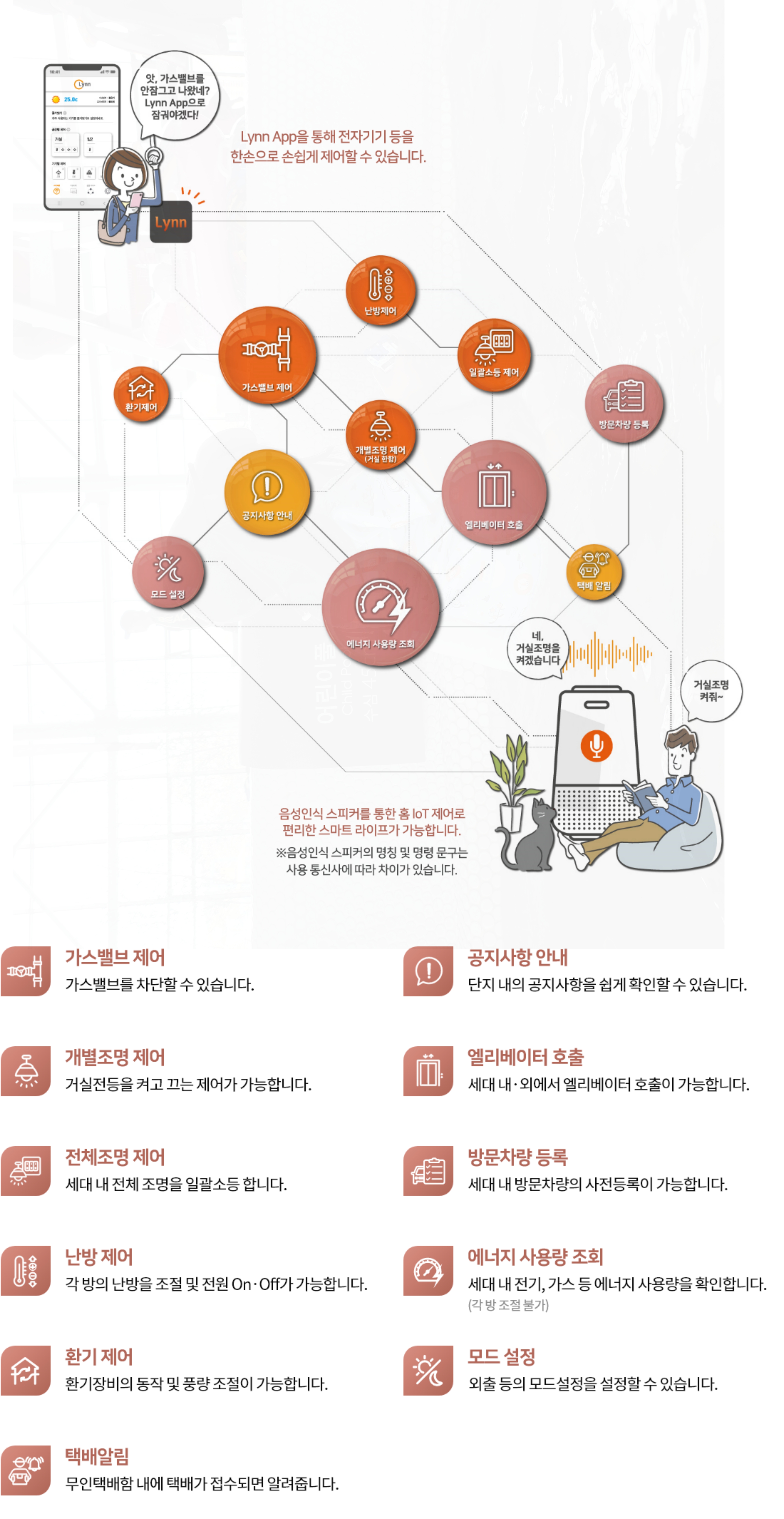 또한, Lynn App을 통해 집안의 기구와 전자기기를 손쉽게 제어할 수 있는 스마트 라이프 환경이 제공됩니다.
