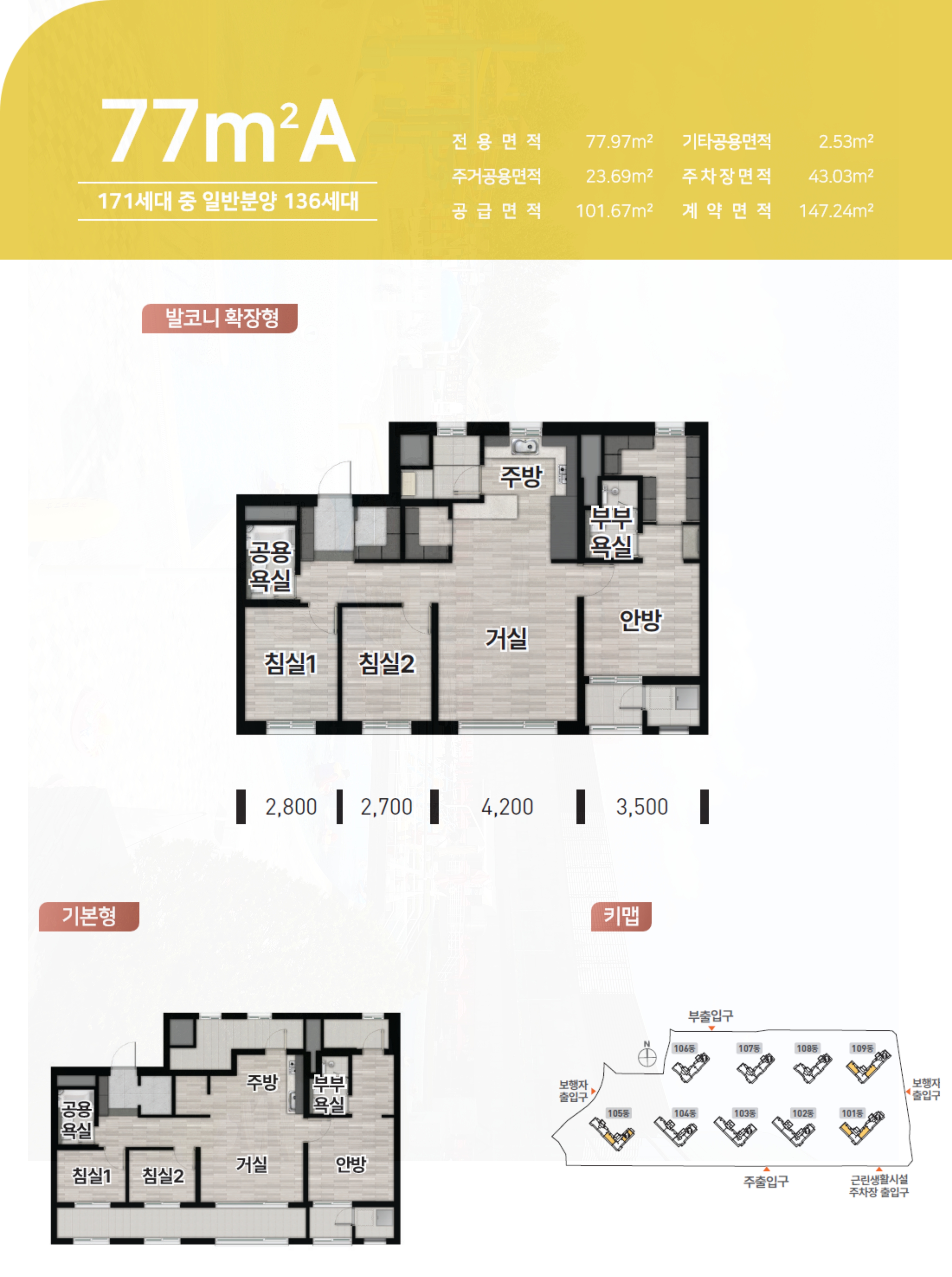 공급면적은 분양 면적은 전용 39㎡, 59㎡, 77㎡, 84㎡로 중소형 위주로 매우 회전율이 높은 특징이 있습니다.