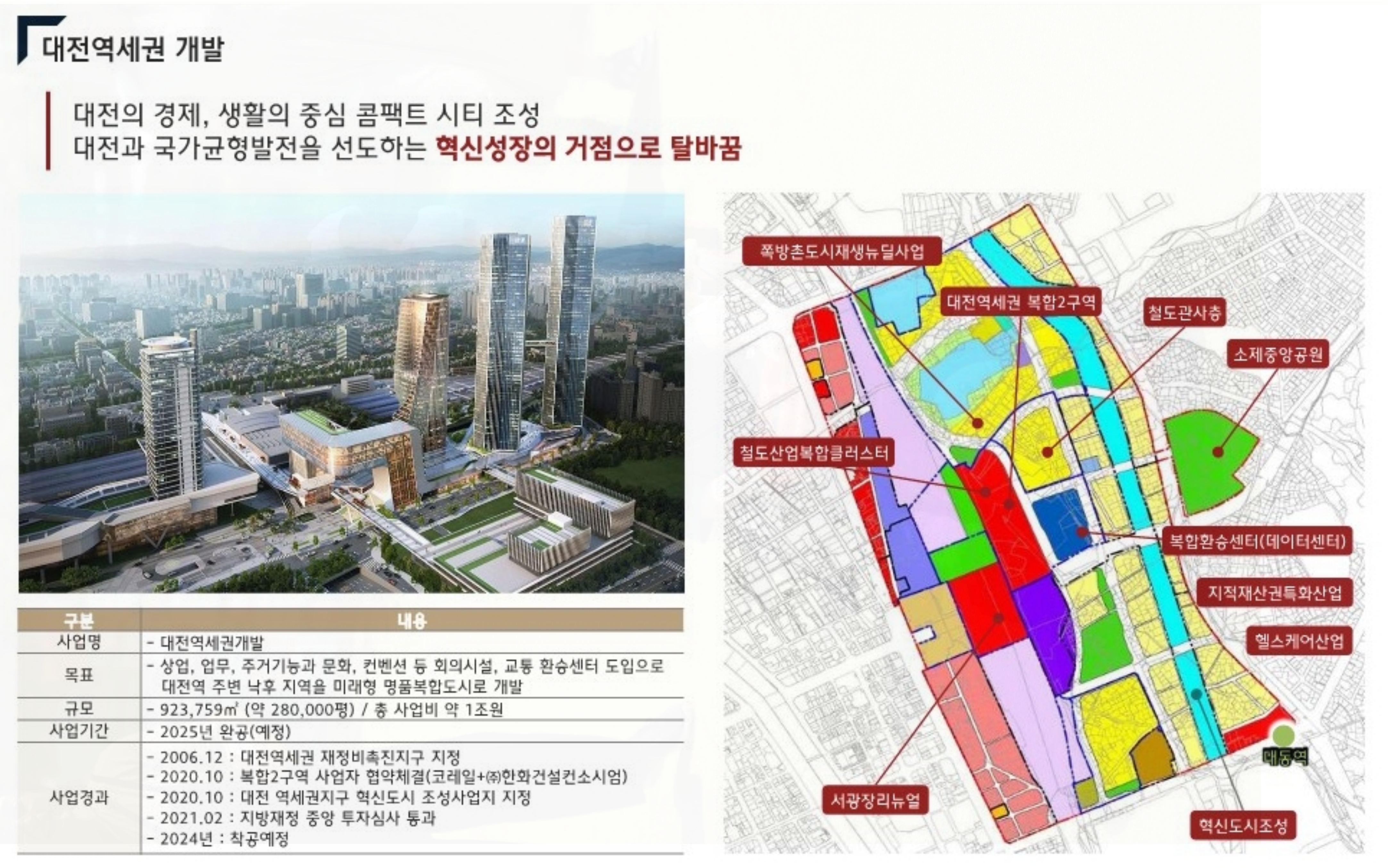 첨단 산업단지 조성계획과 함께 가장 주목 받는 대전의 중요 이슈는 대전역 주변 복합 개발입니다.