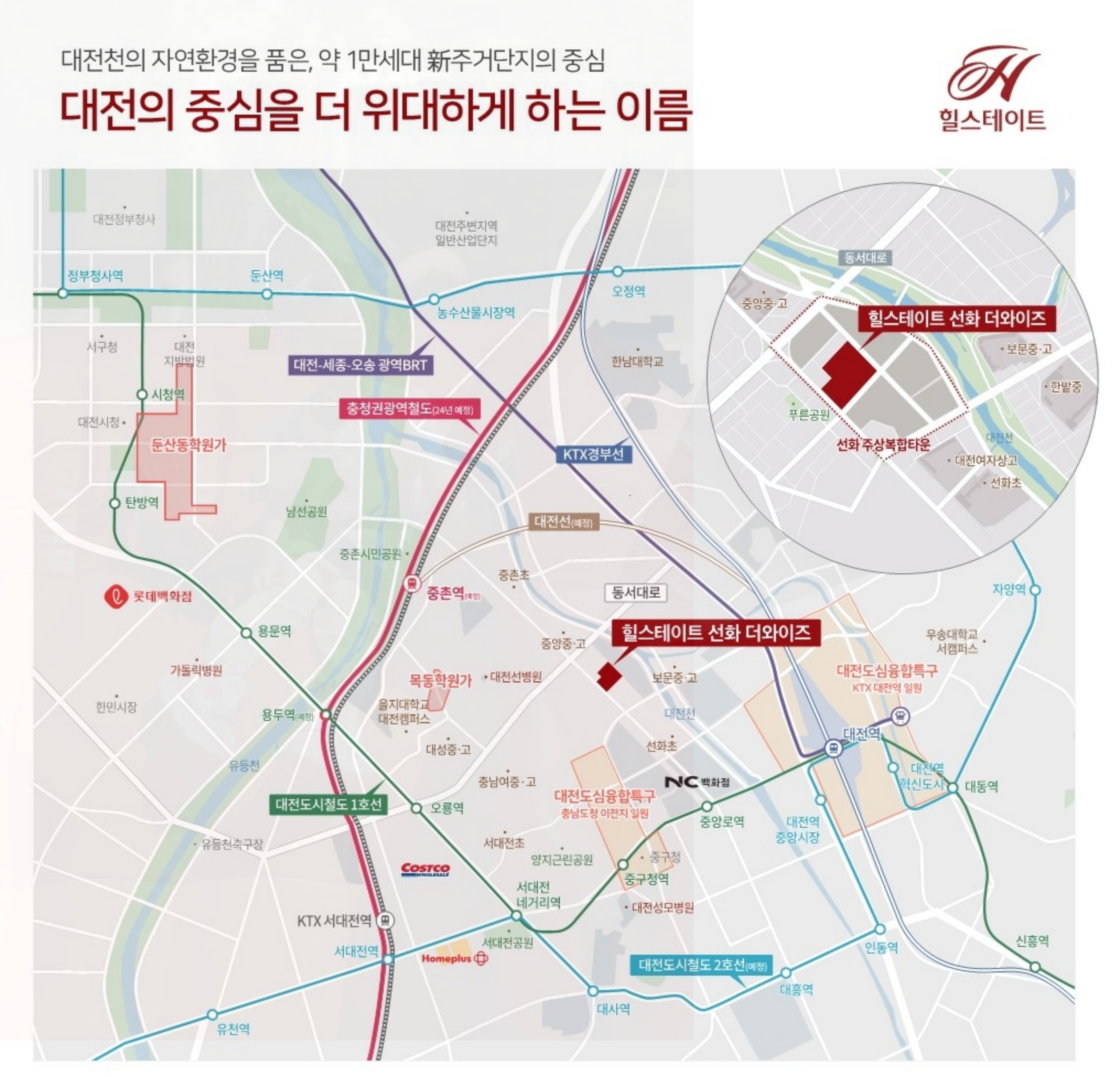 대전 힐스테이트 선화 더와이즈 선화동 아파트 현장은 주변에 대규모 주상복합 단지를 형성하고 있어 상호 협력 및 시너지 효과가 상당히 기대되는 주거 지역이랍니다.