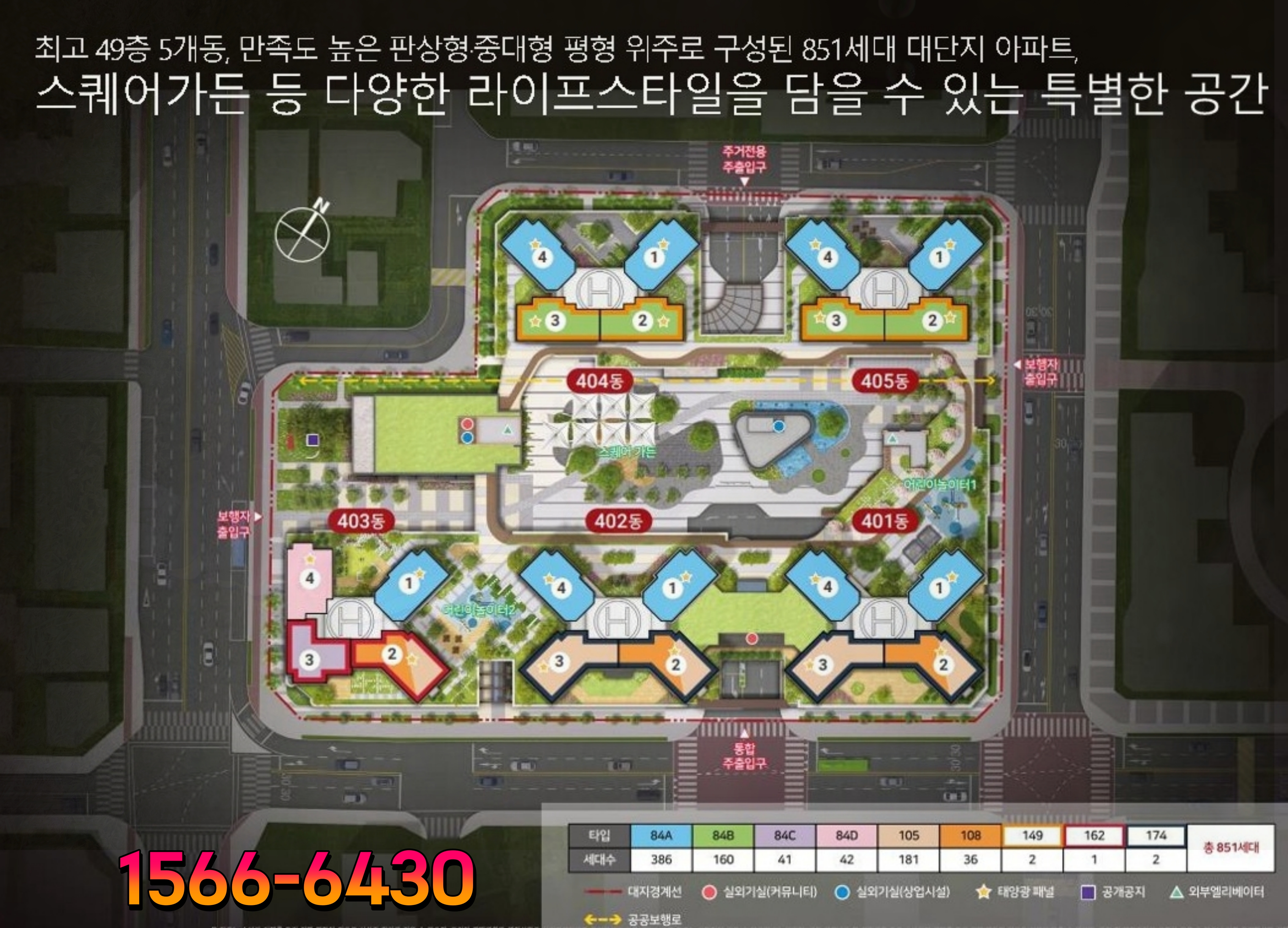 대지의 규모는 약 4천900평이며, 지하 5층부터 지상 49층까지 6개 동에 851세대가 거주하게 됩니다.