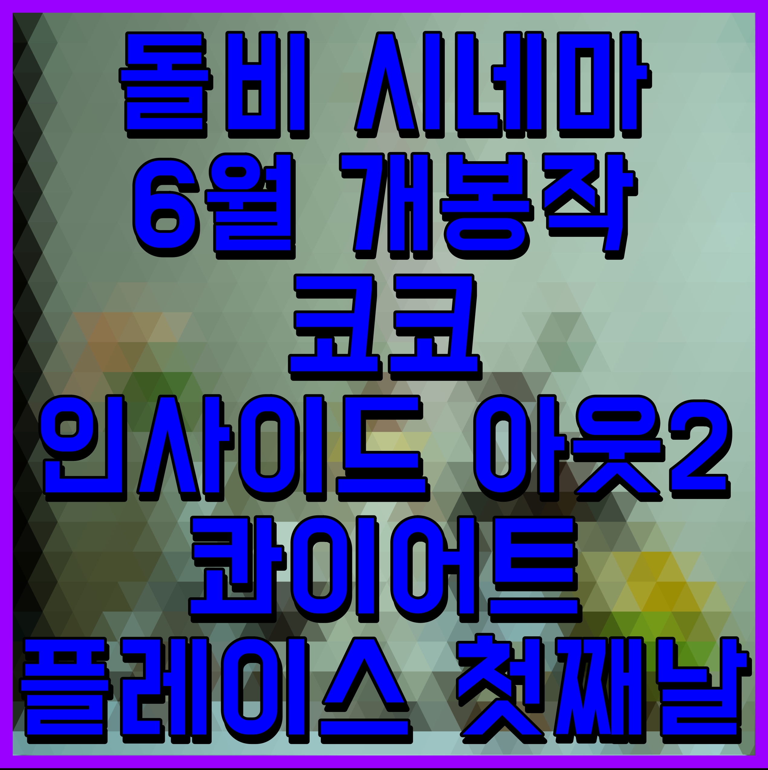 내달 12일에는 누구나 가지고 있는 감정들을 캐릭터로 표현한 애니메이션 영화 인사이드 아웃의 9년 만의 신작 인사이드 아웃 2가 개봉한다.