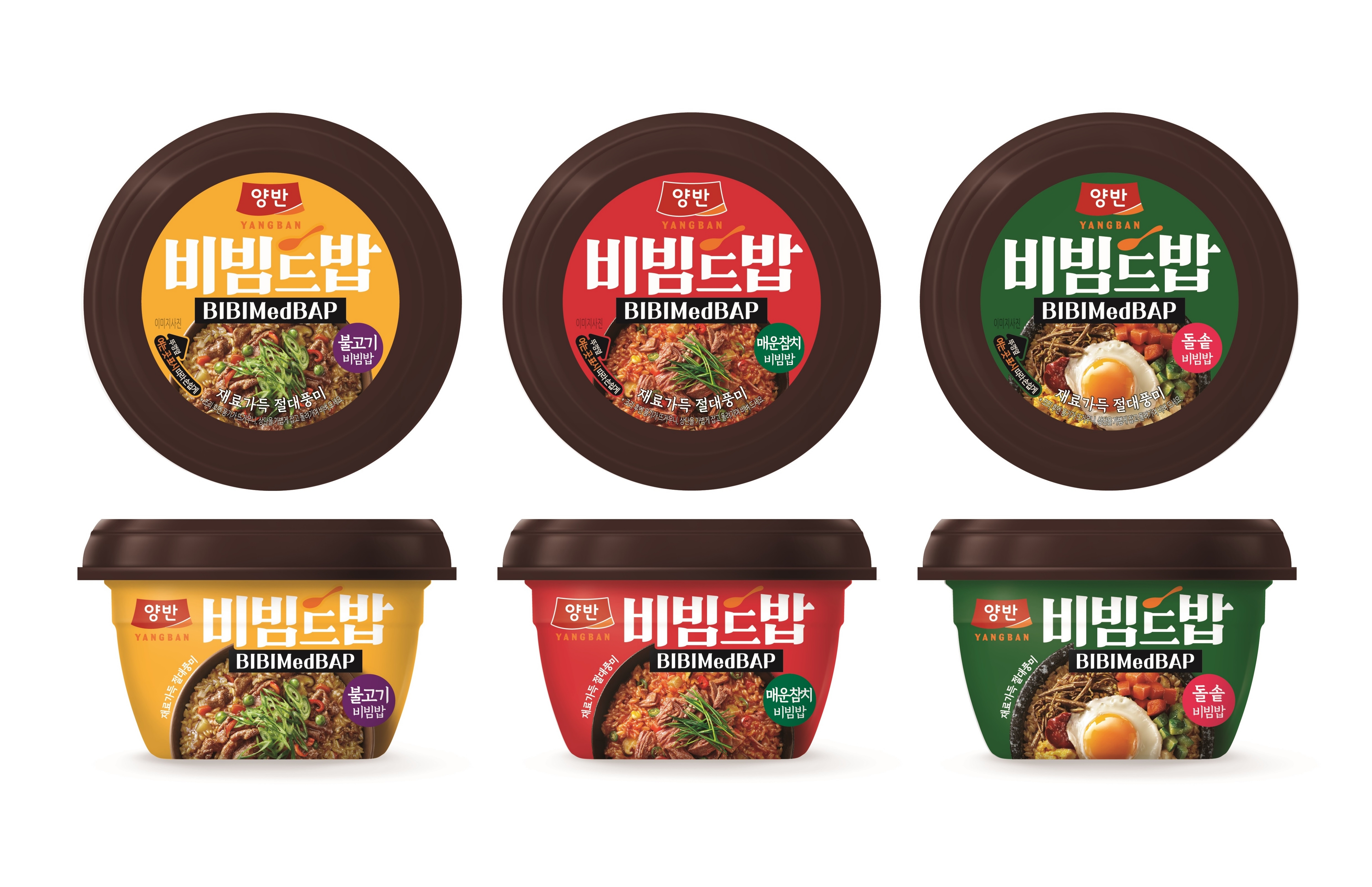 양반 비빔드밥은 △매운참치 비빔밥 △불고기 비빔밥 △돌솥비빔밥 등 용기 3종과 △참치김치 비빔밥 △불고기 비빔밥 △짜장밥 등 파우치 3종으로 구성됐다.