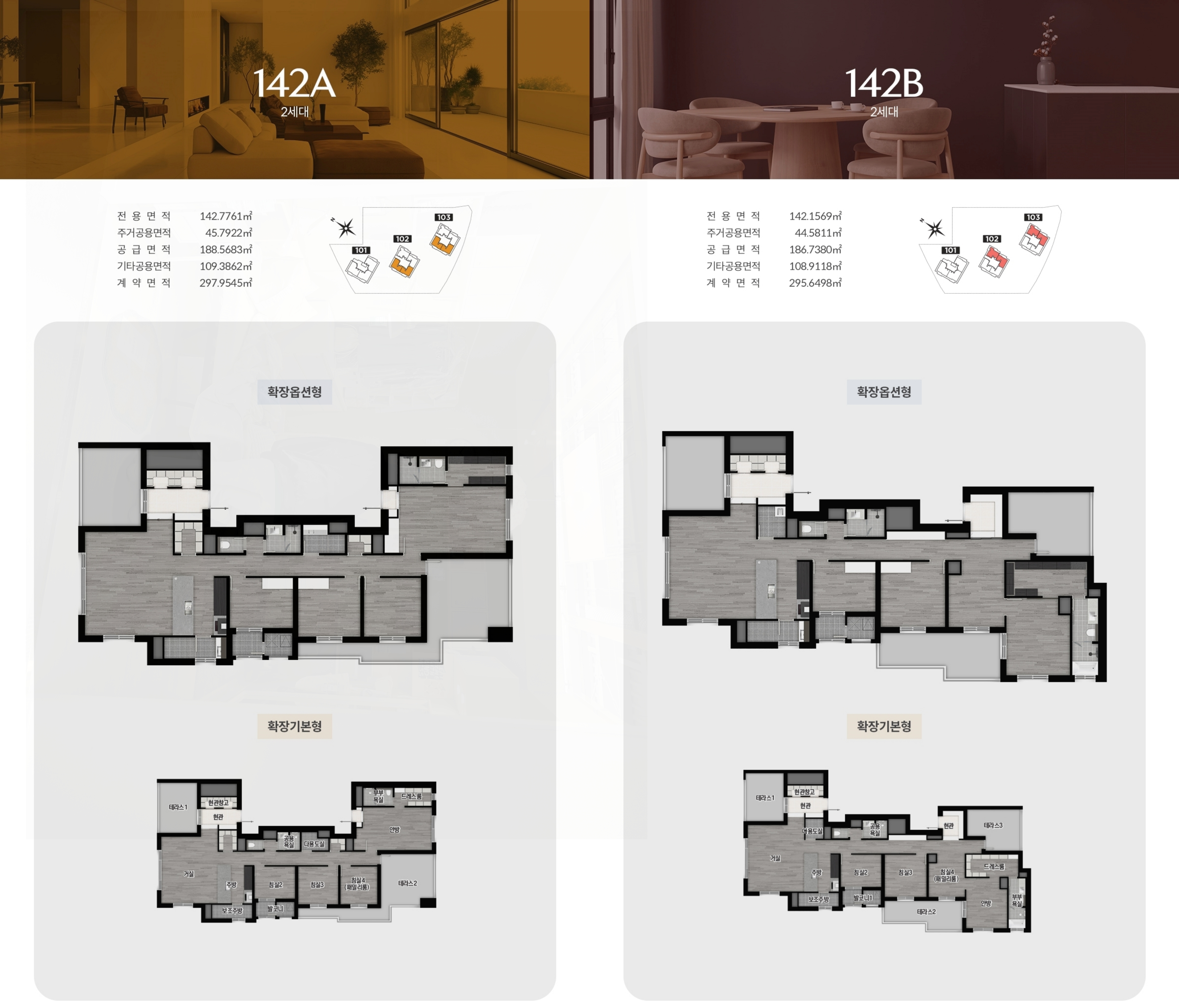 공급 면적은 전용면적은 84㎡, 115㎡, 142㎡, 182㎡로 다양한 수요층의 요구에 부합하는 평형을 제공합니다.