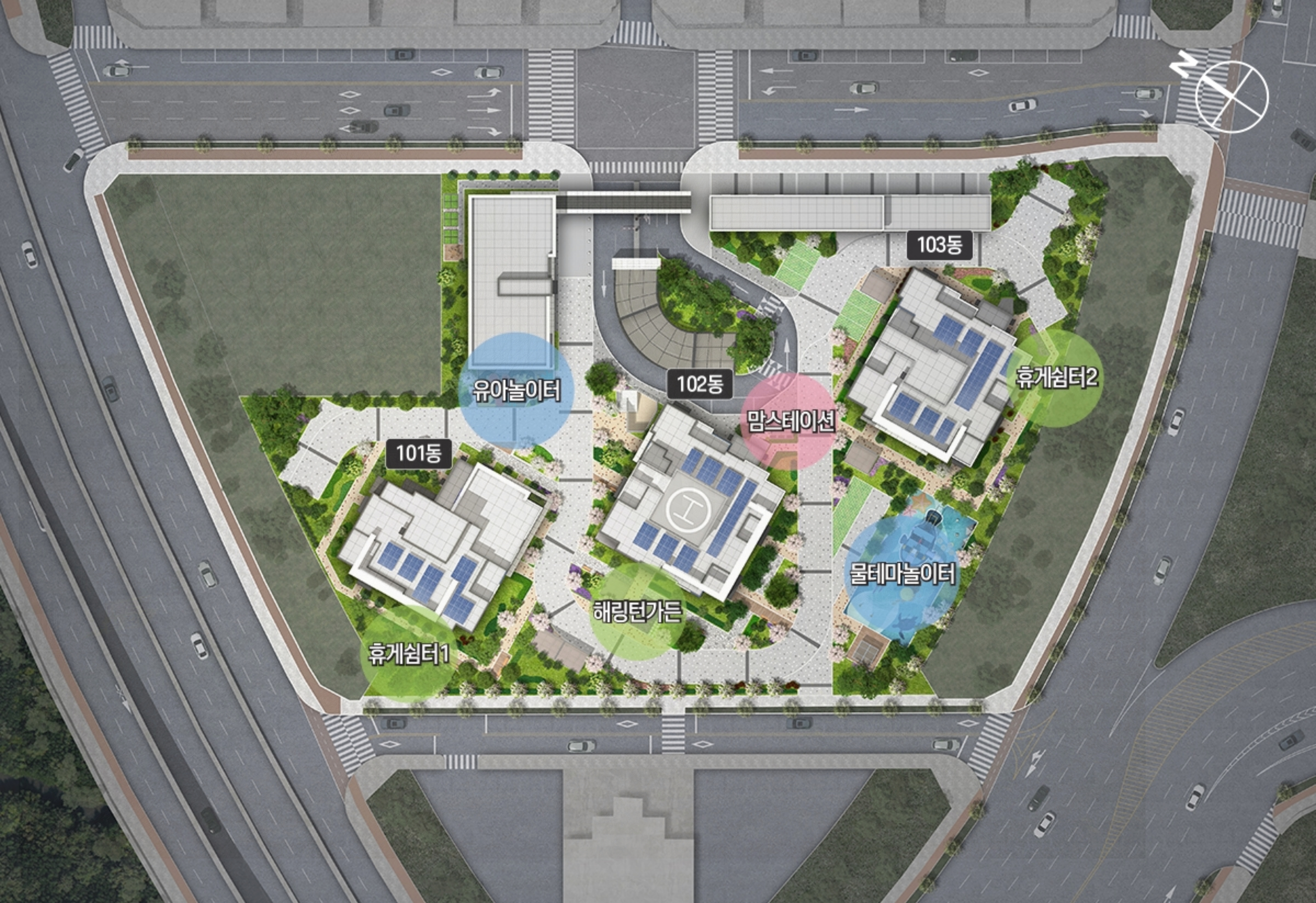 주차 공간은 총 544대로 넉넉하게 마련되어 있어 주차난 문제를 해소하며, 차량 이동은 모두 지하에서 가능하도록 설계되어 도보 통행과 분리되어 있어 주목을 받고 있습니다.