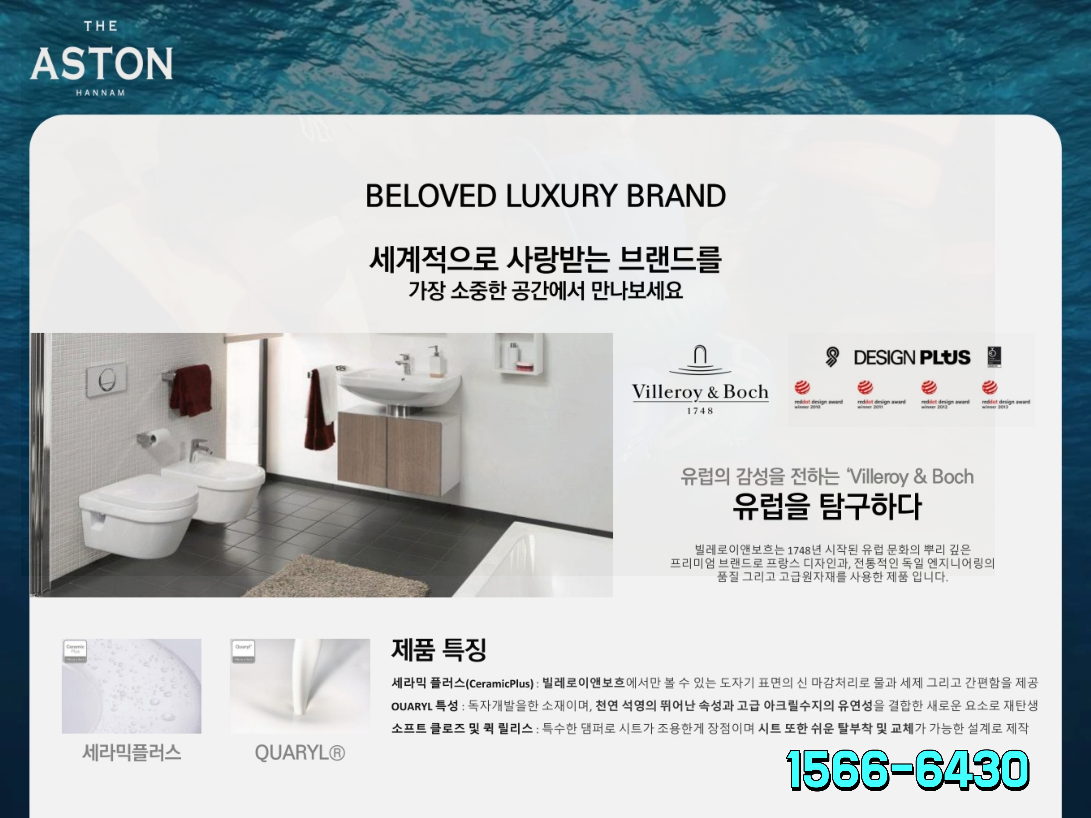 욕실과 주방에는 세계적인 명품 브랜드인 콜러(Kohler)와 빌레로이앤보흐(Villeroy & Boch) 컬렉션을 시공하여 최고급 인테리어를 확립했습니다.