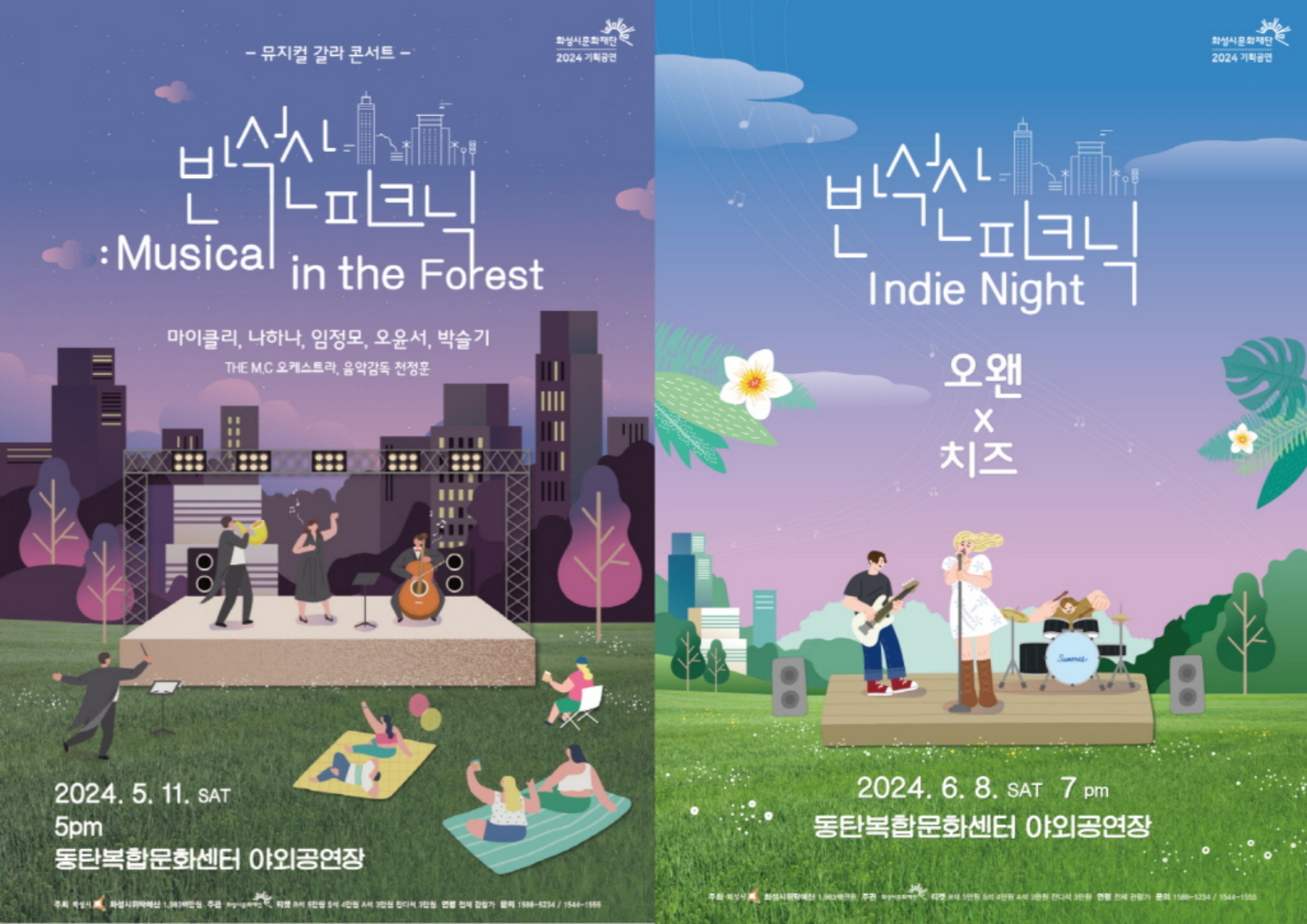 화성시문화재단의 특별한 공간, 도심 속 휴식을 선사하는 동탄복합문화센터 야외공연장에서 오는 5월과 6월 반석산 피크닉 Musical in the Forest (뮤지컬 인 더 포레스트)와 Indie Night (인디 나잇) 콘서트를 선보인다.