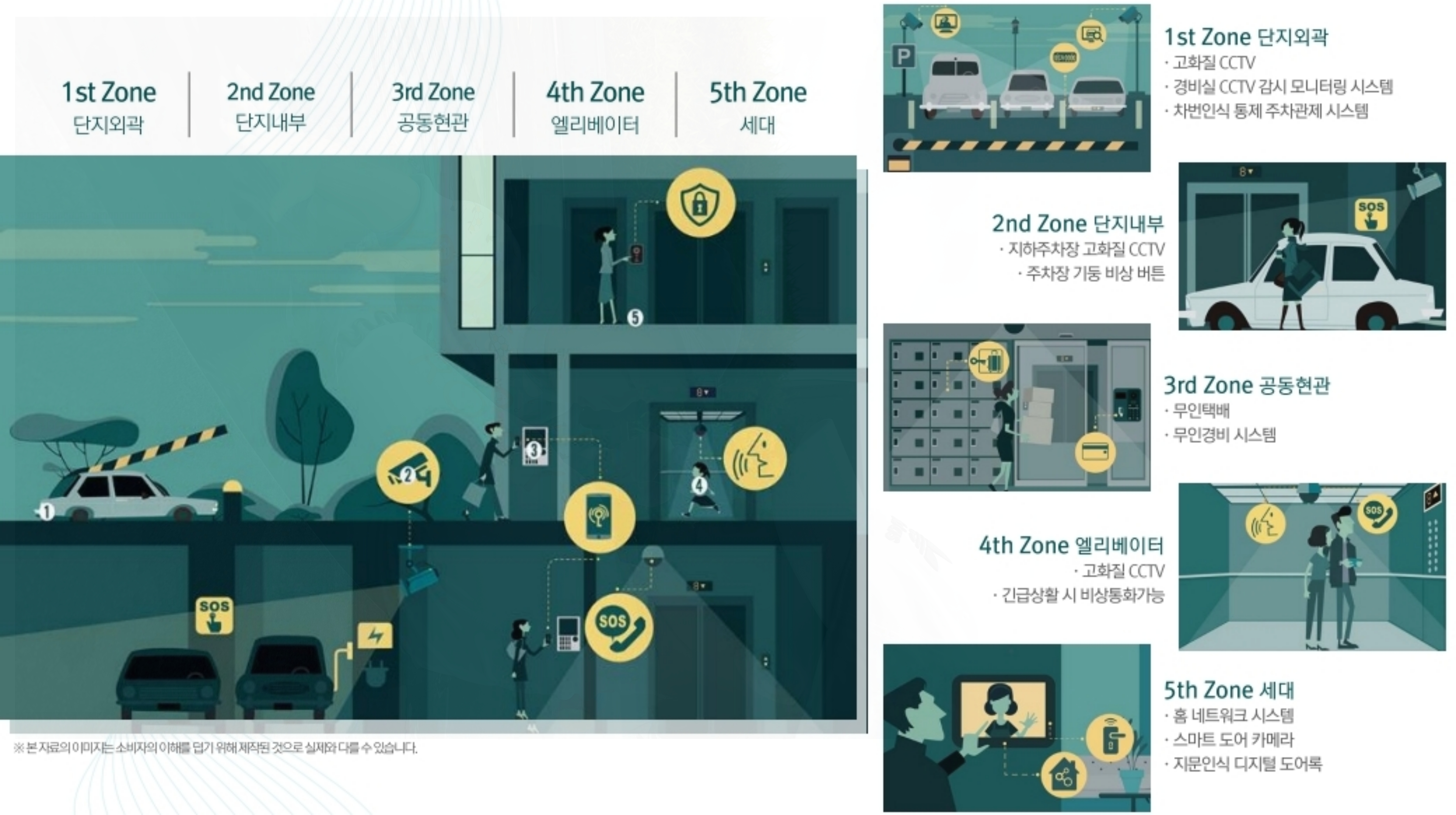 여기에 더하여 청정시스템을 설치하여 보다 쾌적하게 생활할 수 있도록 세심함을 더했고, 단지 내 5개 구역에 보안 강화 시스템을 구비하여 입주민들이 안전하게 생활할 수 있도록 합니다.