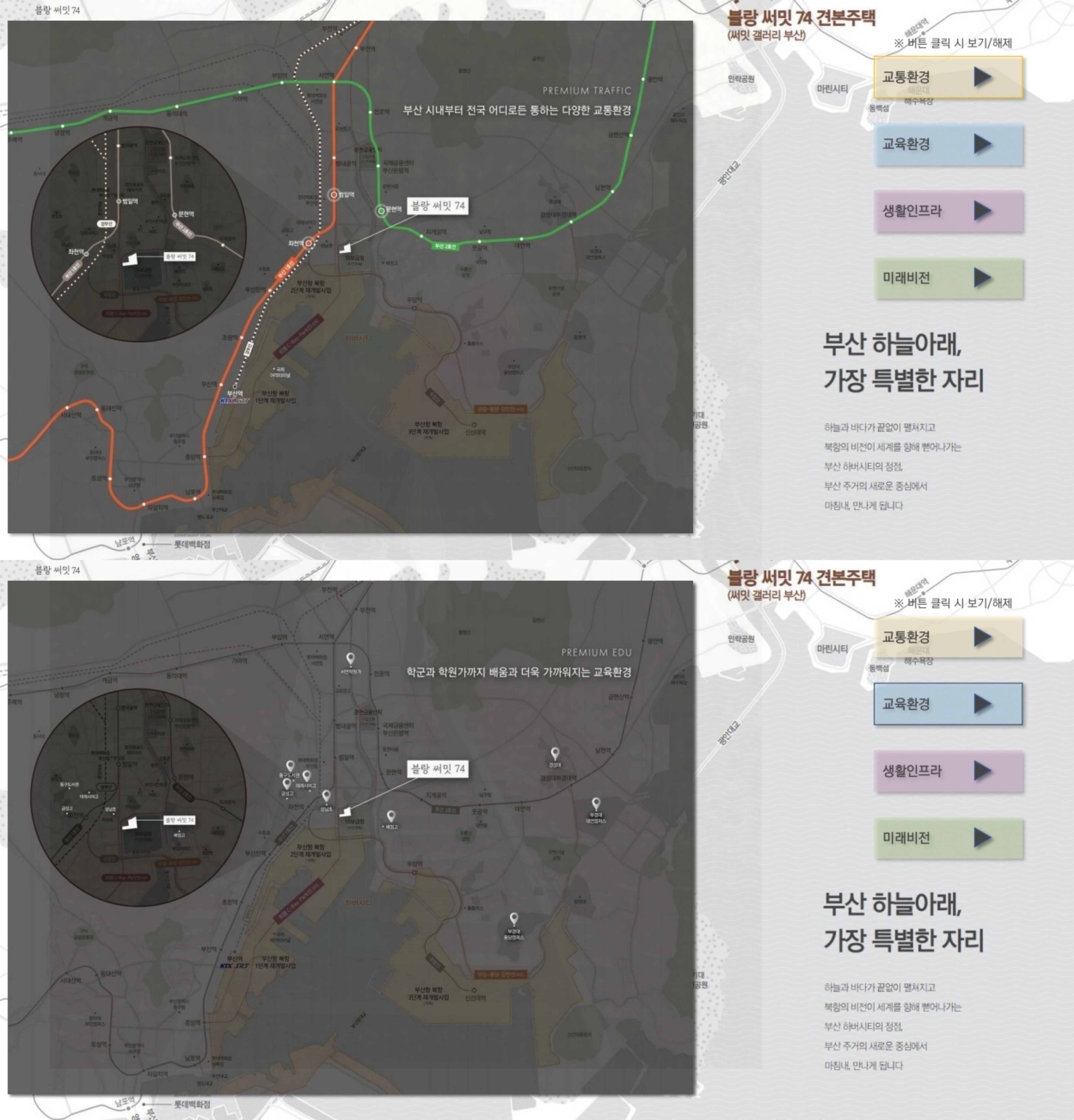 부산 블랑써밋74 아파트와 오피스텔은 이러한 다양한 요소들로 인해 미래 가치가 기대되는 최적의 입지에 위치하고 있으며, 랜드마크 상품성으로 차별화된 가치를 지니고 있습니다.