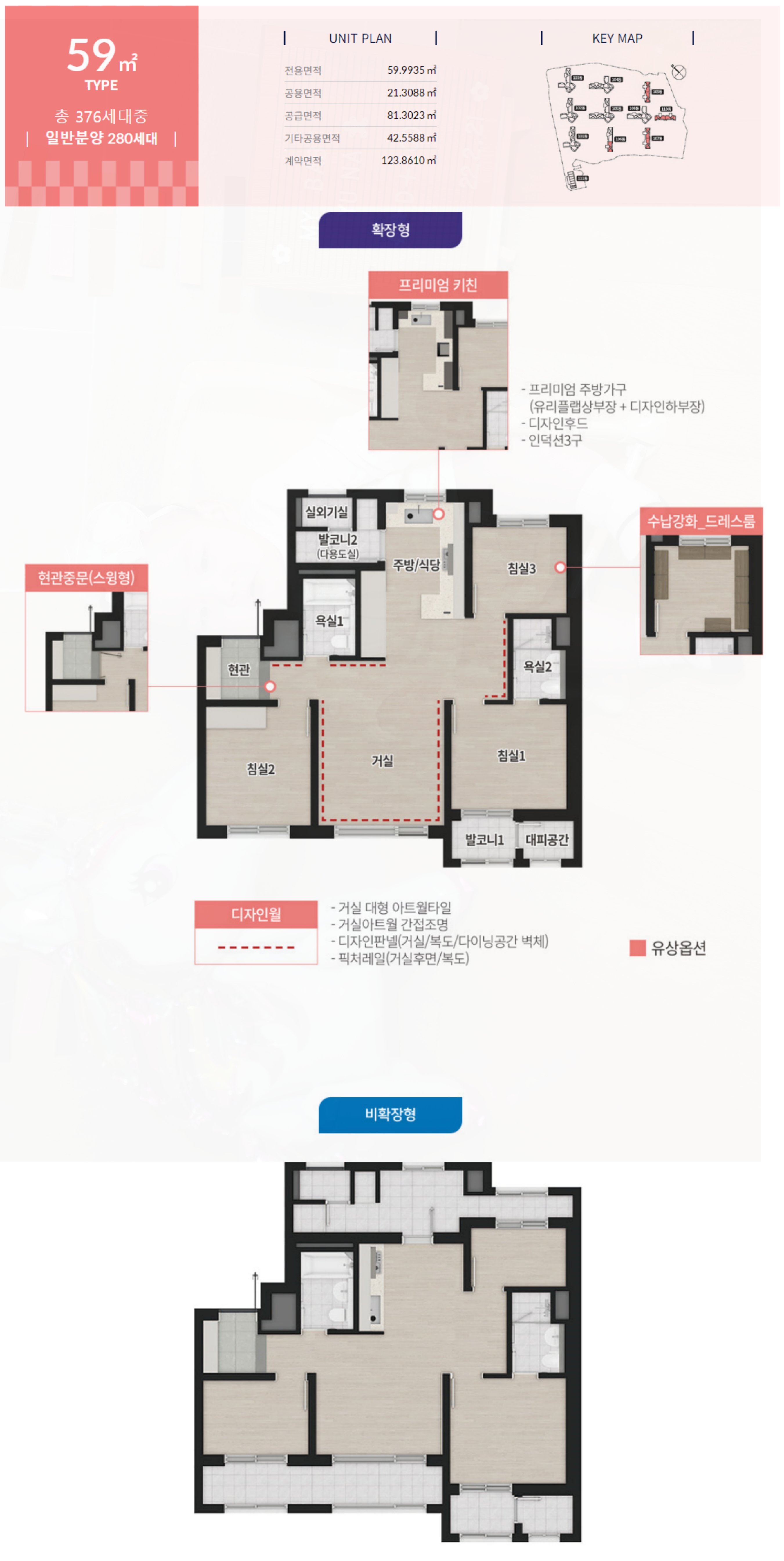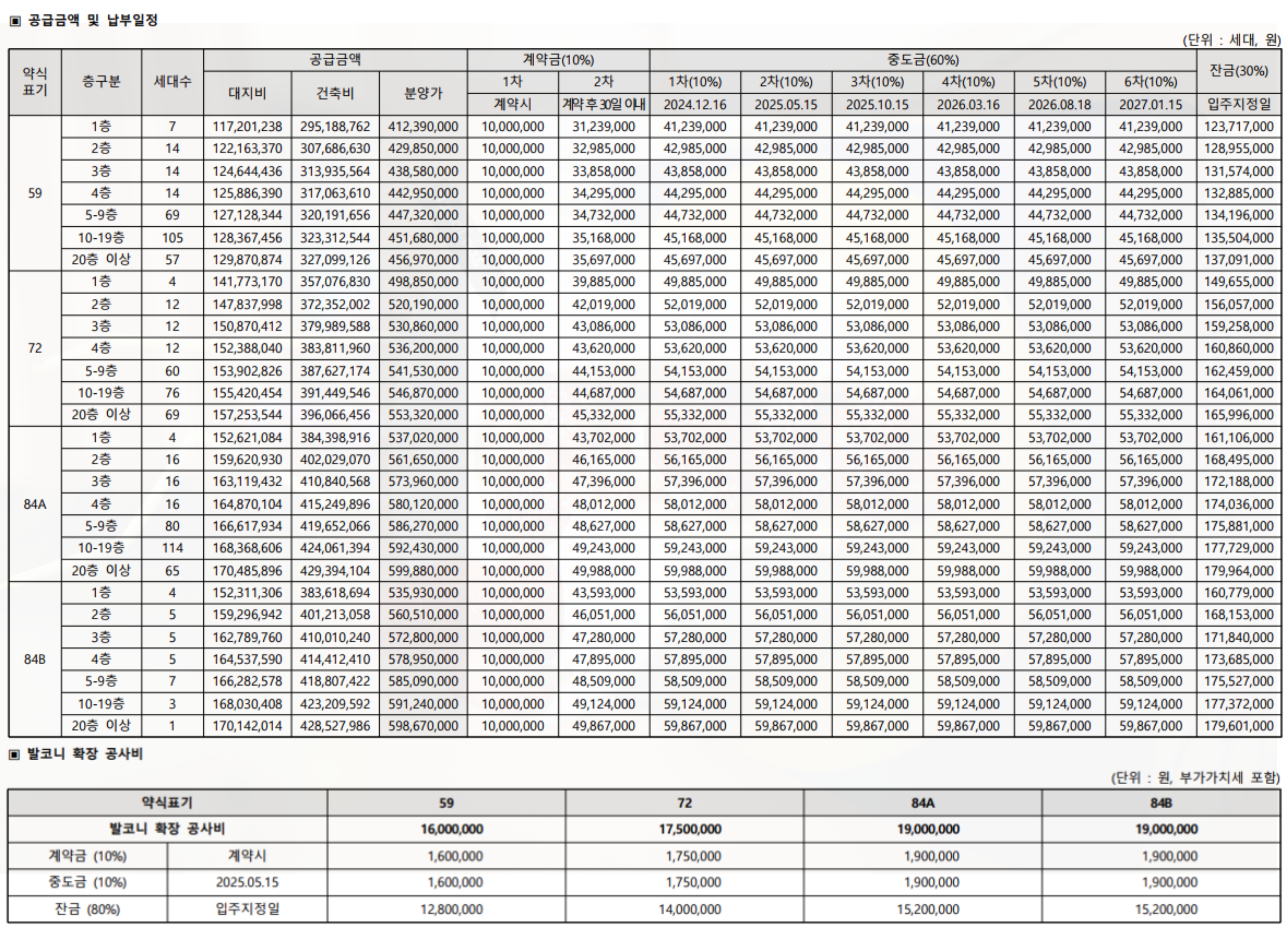 분양가도 주목을 받고 있습니다. 전용면적 59 타입의 경우 최고가가 4억 5697만 원 , 72 타입 최고가는 5억 5332만 원 84A타입 5억 9988만 원 , 84B 5억 9867만 원입니다. 여러 호재를 품고 있기 때문에 이 정도라면 충분히 해볼 만하다는 게 전문가의 의견이라고 하네요. 물론 판단은 본인 스스로 잘 내리셔야 하겠죠?