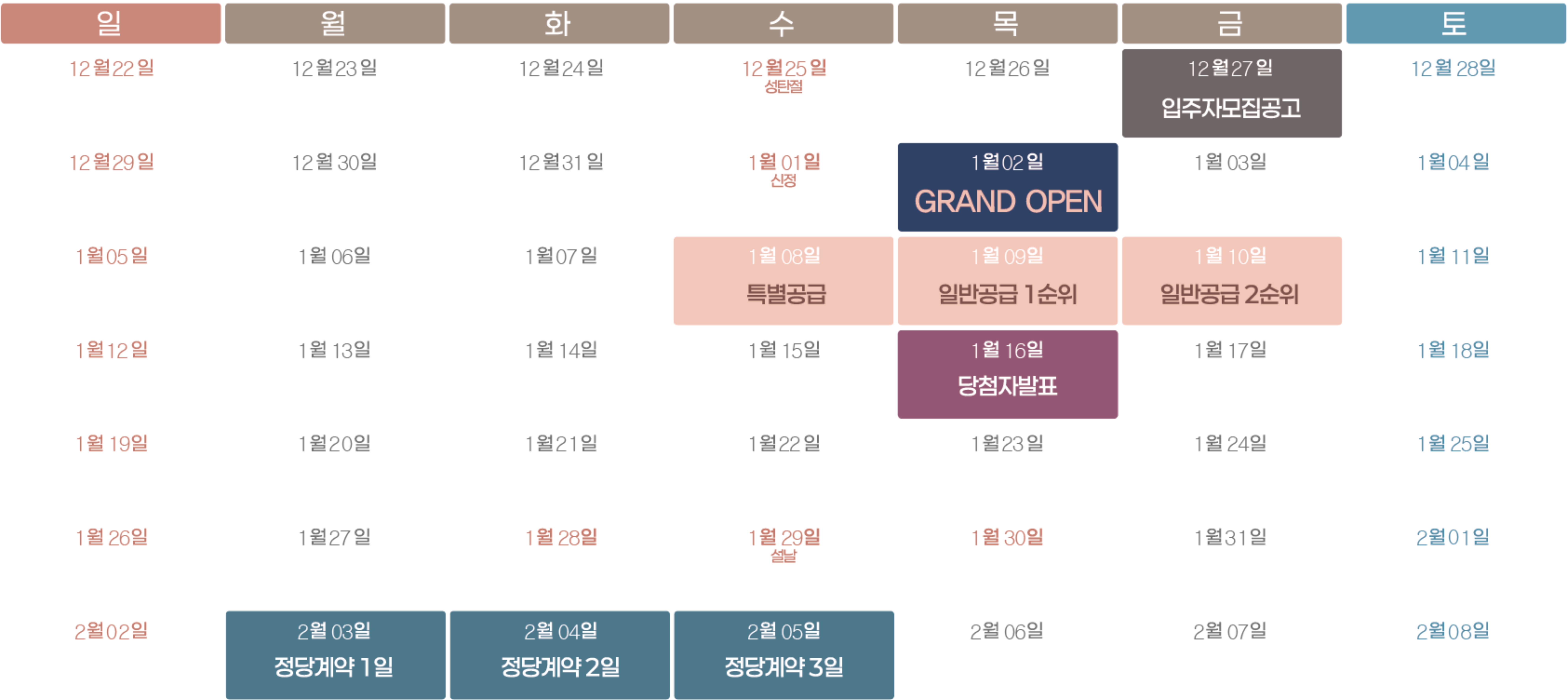 당첨자 발표는 1월 16일이며, 정당 계약일은 2월 3일부터 5일까지 사흘간 이어집니다.