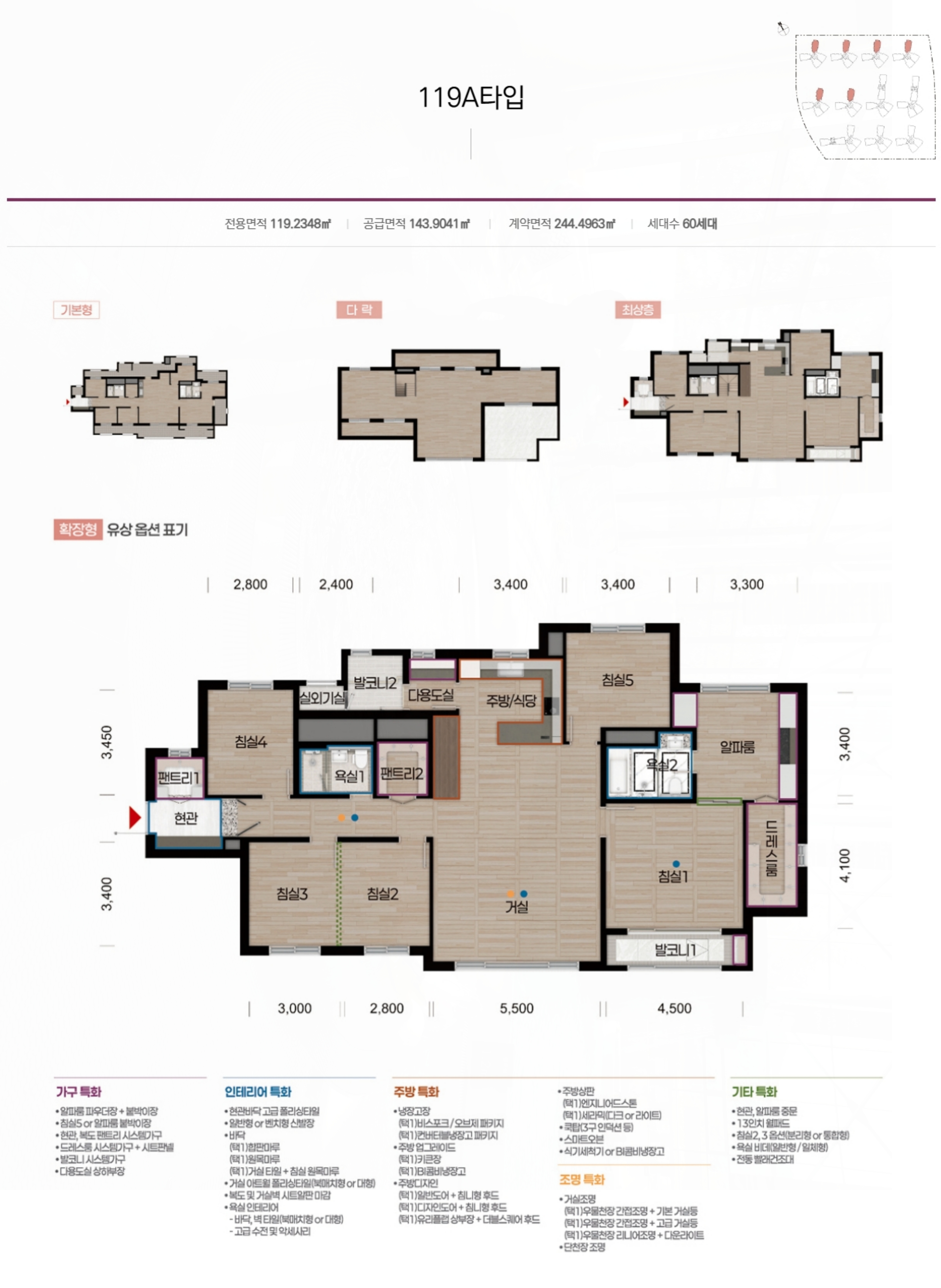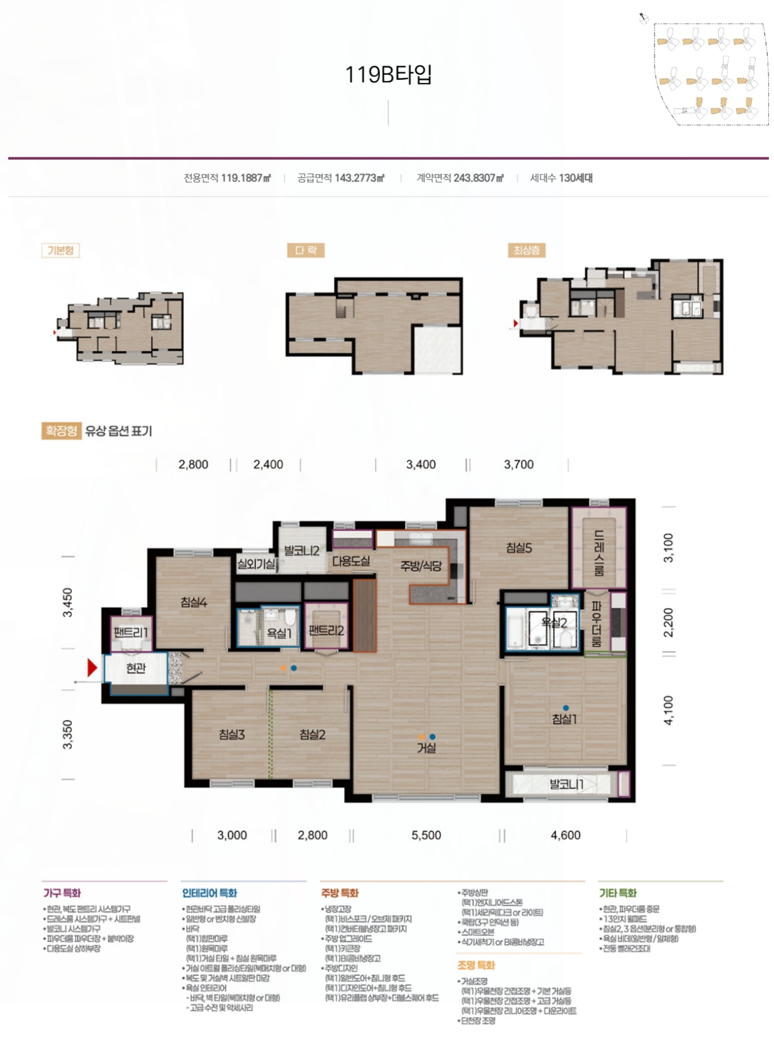 A~C타입은 방이 다섯 칸이지만 2칸을 하나로 합쳐서 사용이 가능한 가변형 구조라는 점에서 더욱 호감도가 상승 중이라고 하네요.