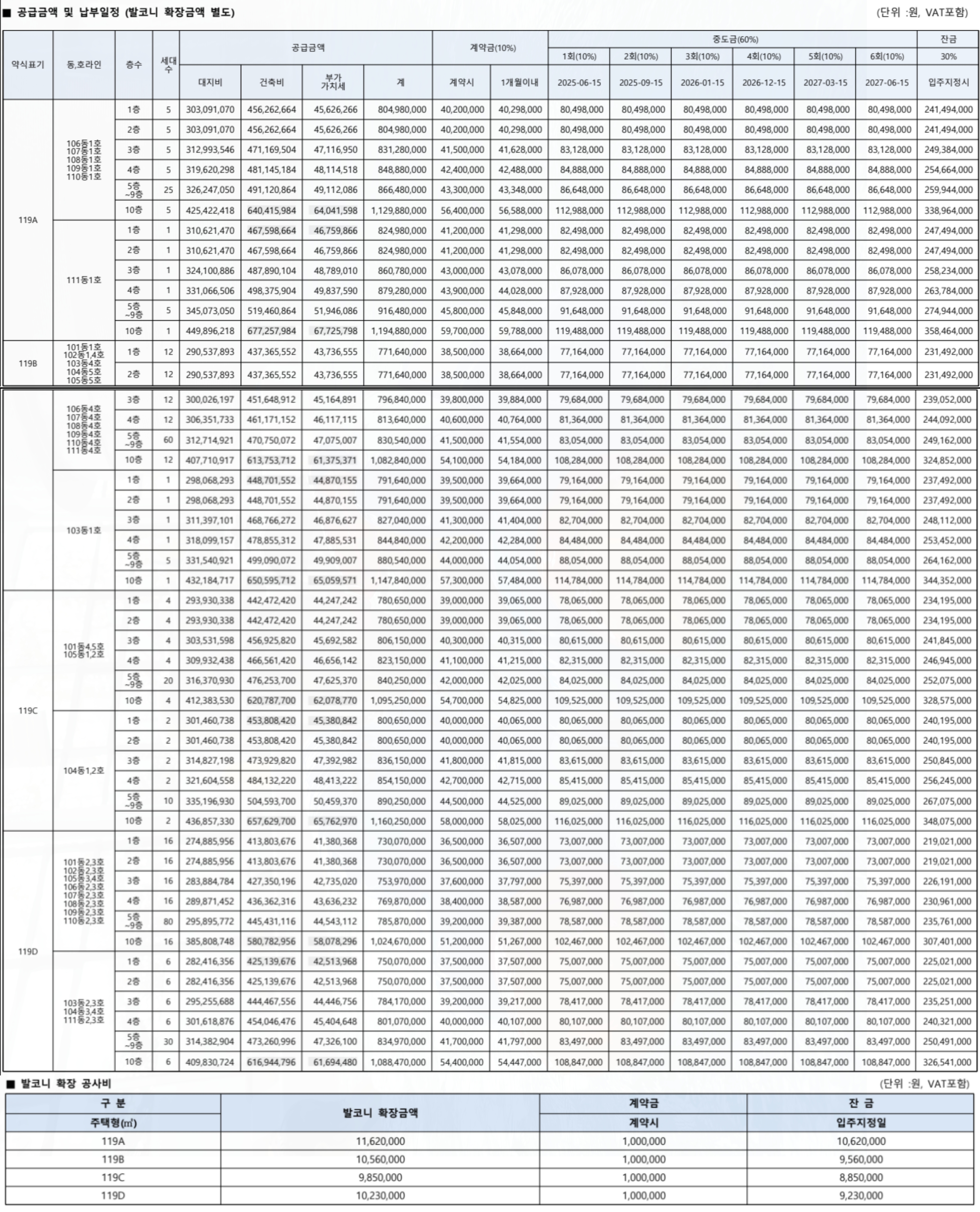 발코니 확장비는 1천만 원 전후로 전체 분양가 대비 부담스러운 가격대는 아닌 듯 보입니다.