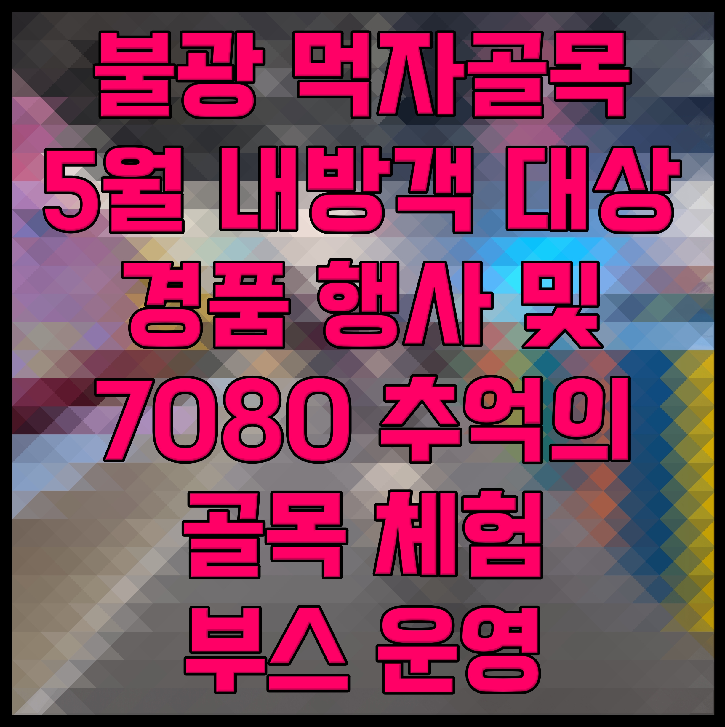 행사는 5월 16일~18일 불광 먹자골목 원형광장에서 진행된다. 행사 기간 불광 먹자골목에서 3만원 이상 구매하는 모든 내방객에게 경품 응모권을 지급한다.