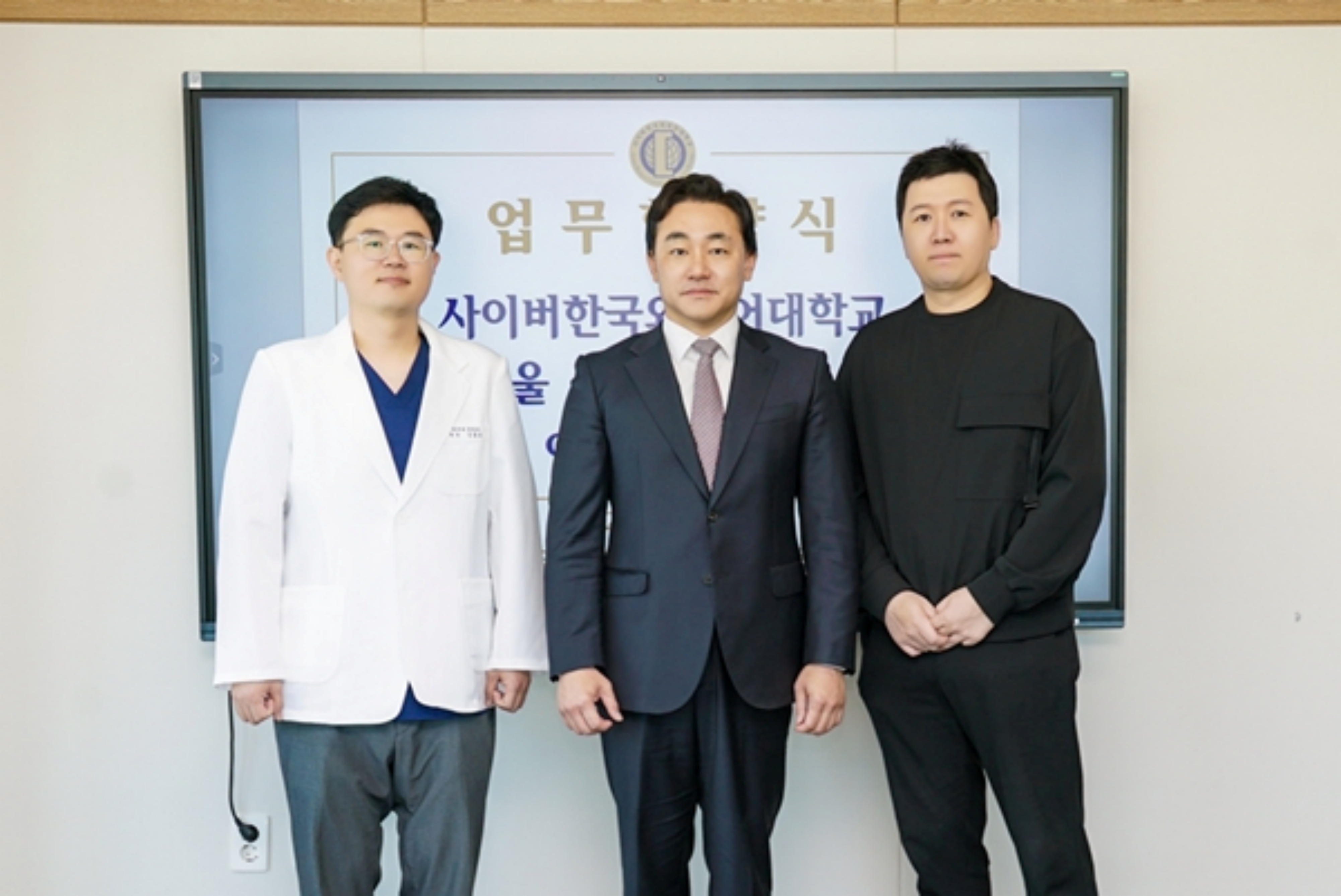 이날 사이버한국외대 CUFS20 9층 회의실에서 열린 협약식에는 서울아트피부과 강홍규 원장과 에이블치과 최민욱 원장이 참석했다.