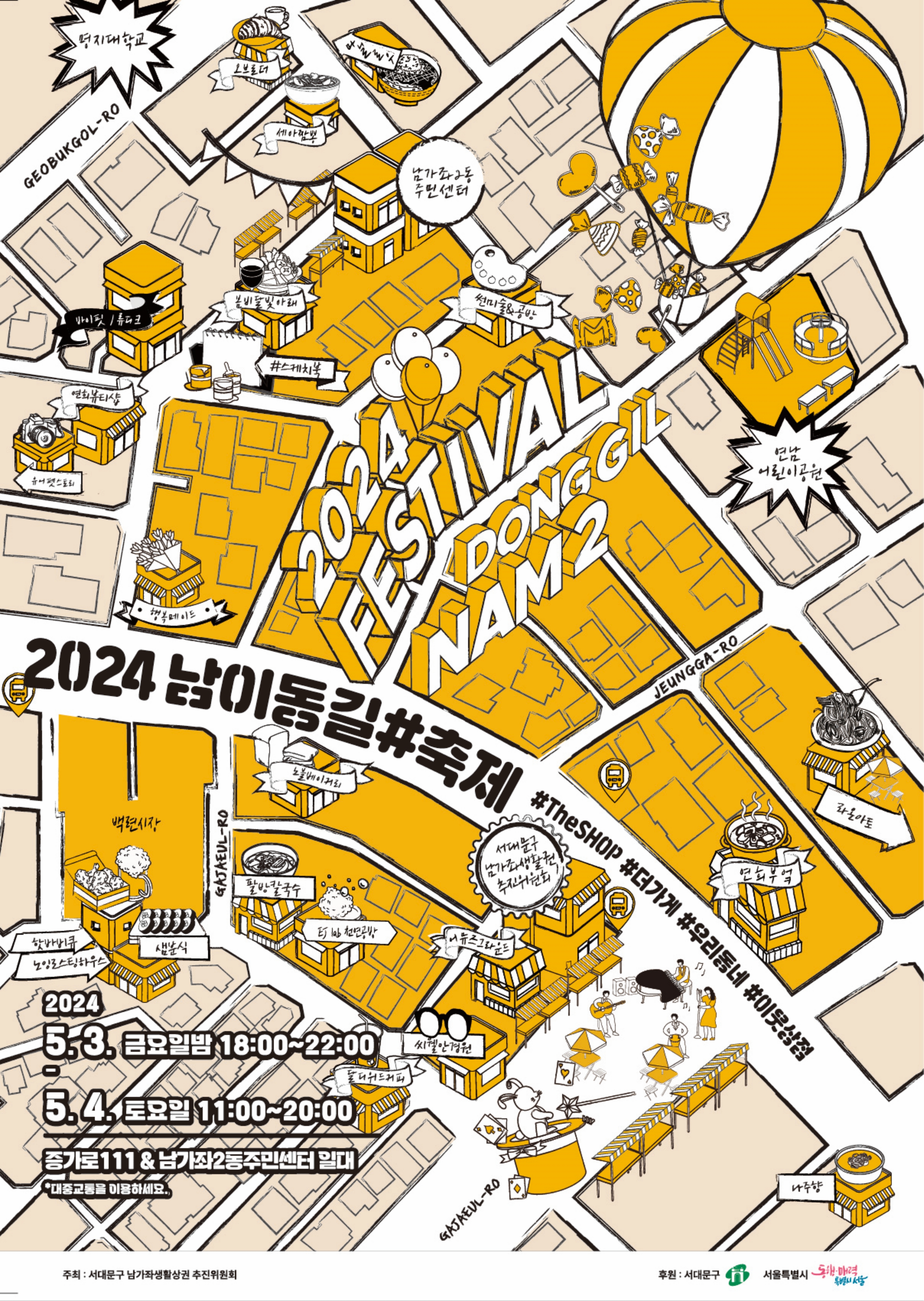 5월 4일 2024 남이동길#축제를 오전 11시~오후 8시에 증가로 111번지 일대에서 개최한다.