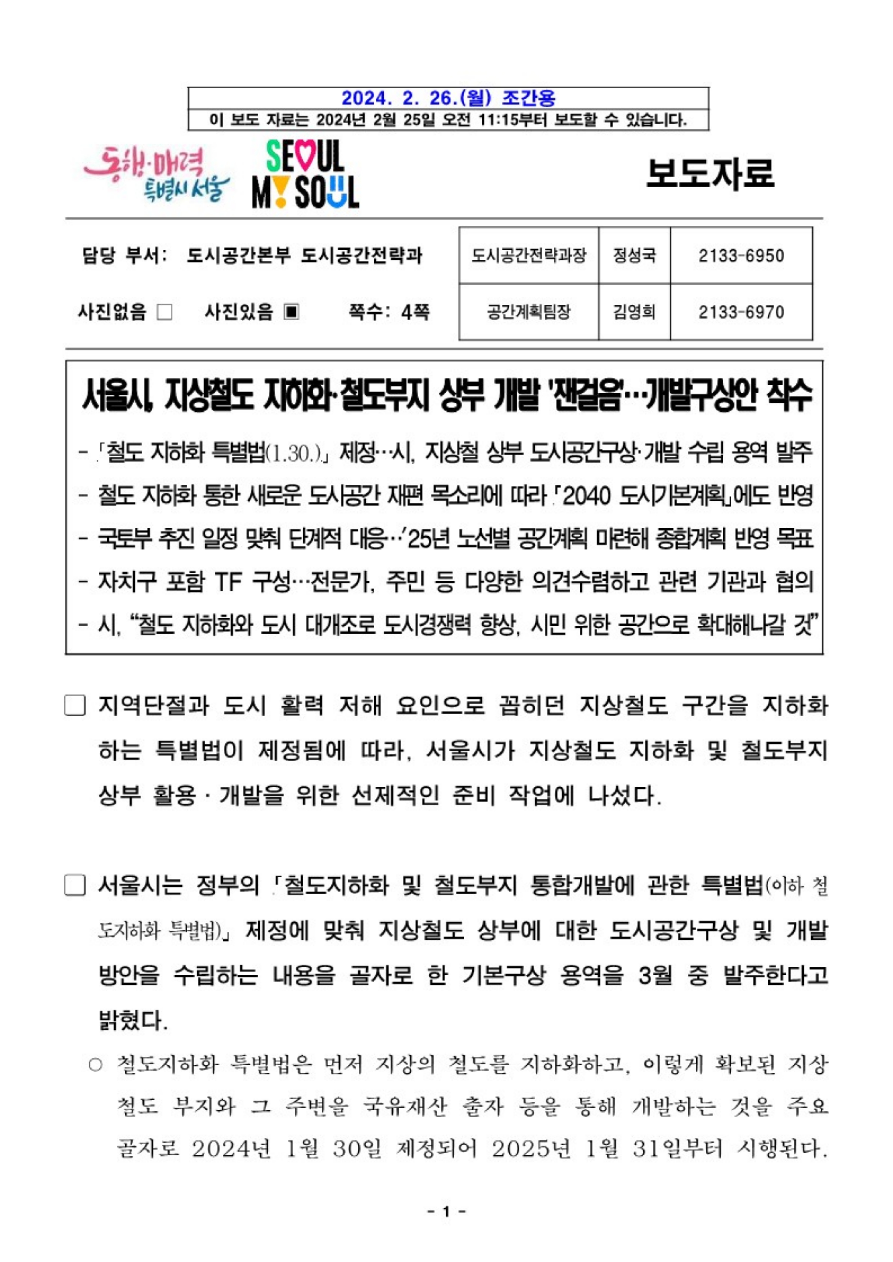 서울 도심 지상철도 지하화 개발 구상안 착수 관련 내용 도움이 되셨길 바랍니다.