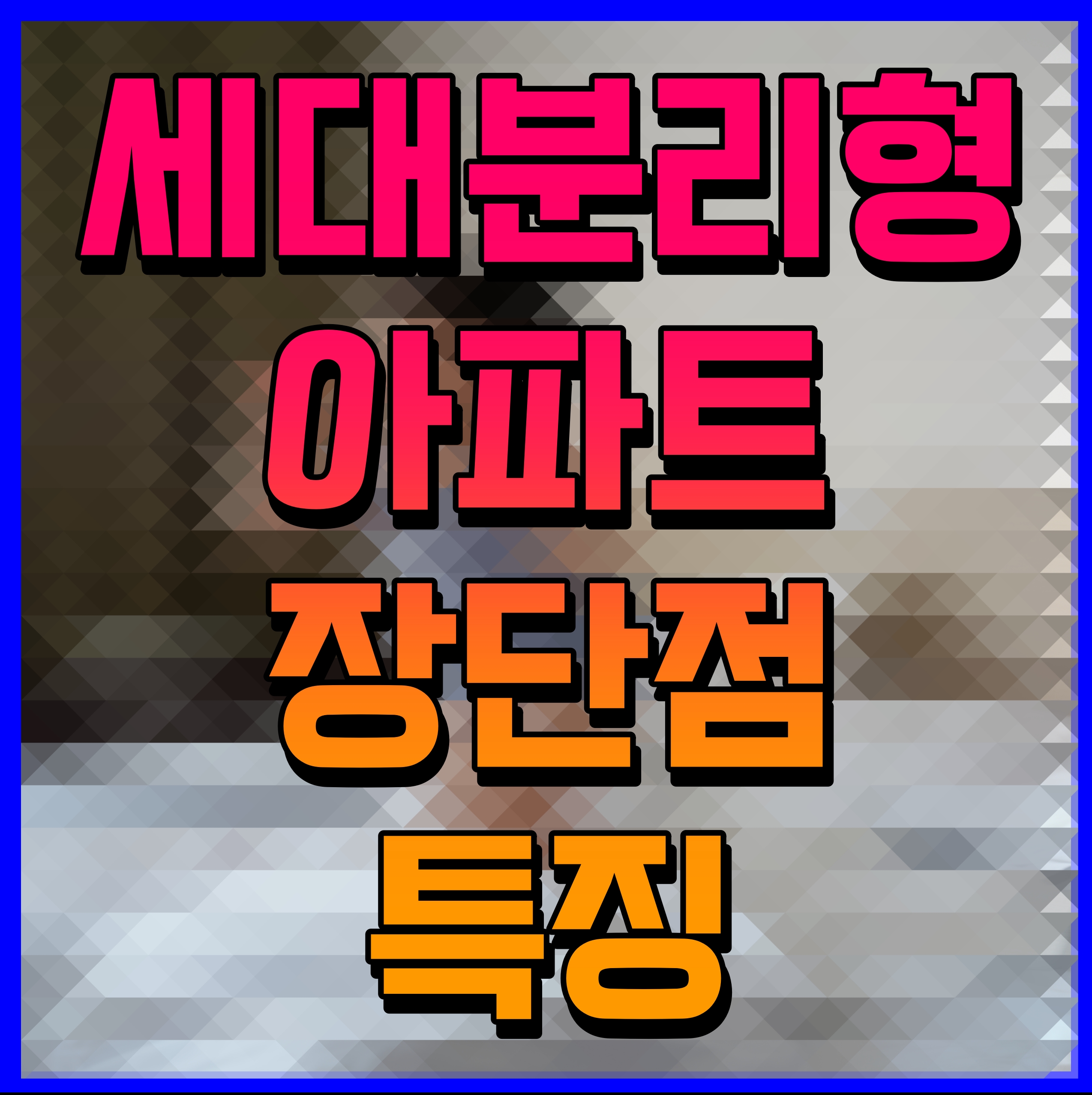 1, 2인 가구 증가와 임대 수익에 대한 관심이 높아지면서 주택 시장에서 새로운 대안으로 떠오르고 있습니다. 과연 세대분리형 아파트는 무엇이며, 어떤 특징과 장단점을 가지고 있을까요? 자세히 알아보겠습니다.