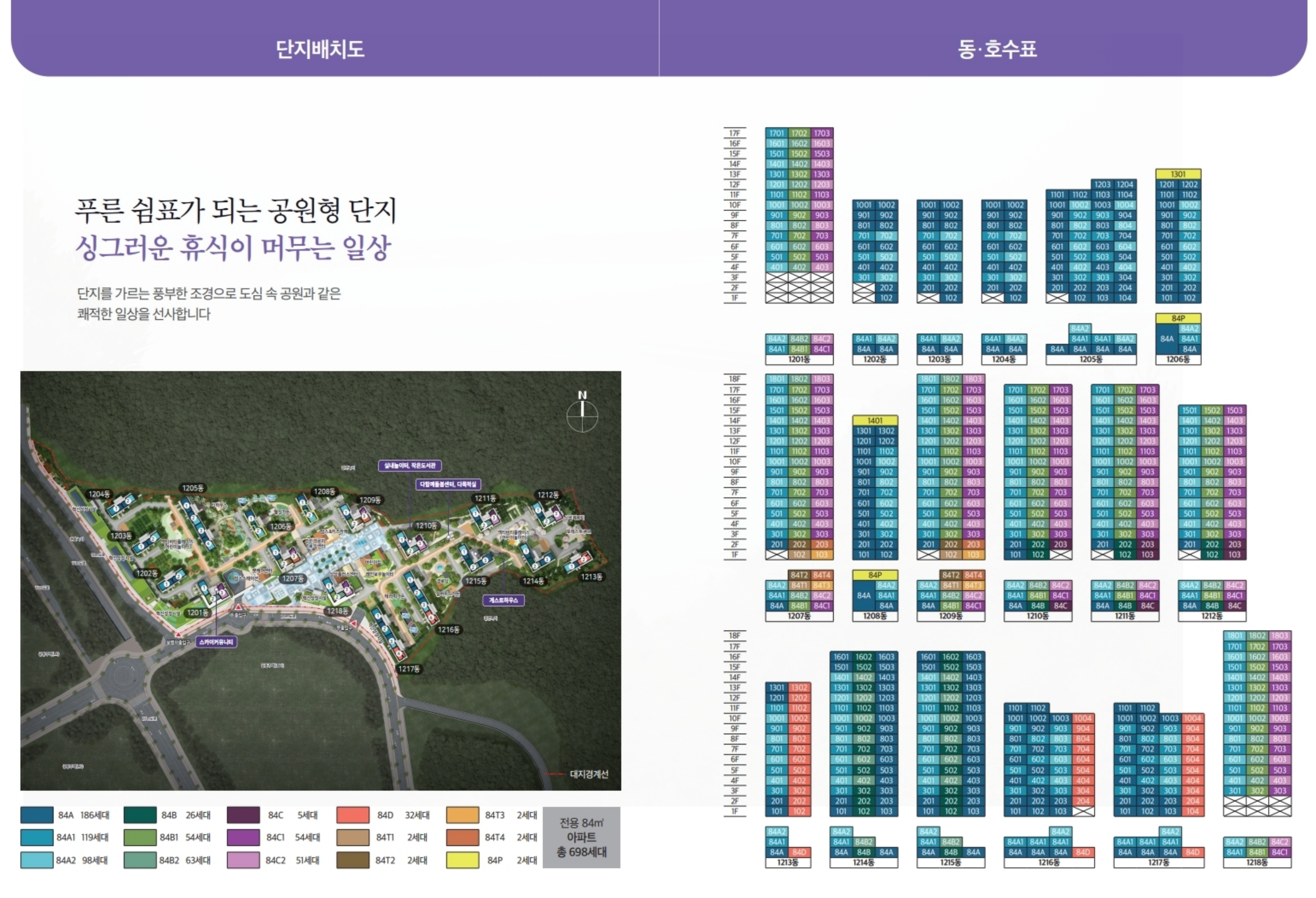 18개 동은 동간 간섭을 최소화하고 프라이버시를 강화한 점이 특징이며, 동별로 충분한 이격 거리를 두어 쾌적성을 극대화한 설계가 돋보입니다.