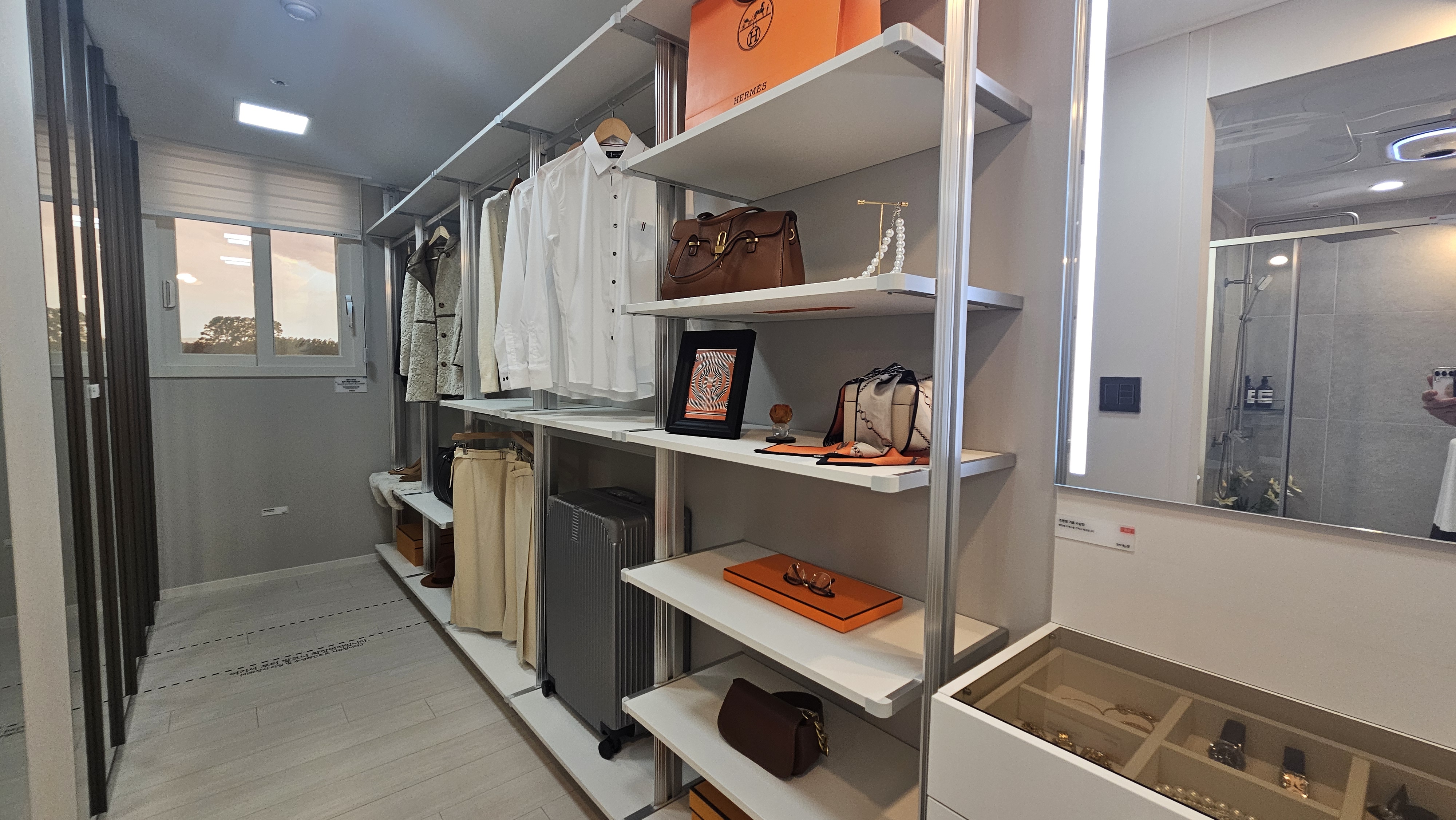 여기에 요즘 신축 아파트의 필수 요소로 자리 잡은 현관 펜트리와 복도 펜트리까지 총 3개의 펜트리가 마련되어 있어 '수납 맛집'이라는 별명이 아깝지 않을 정도입니다.