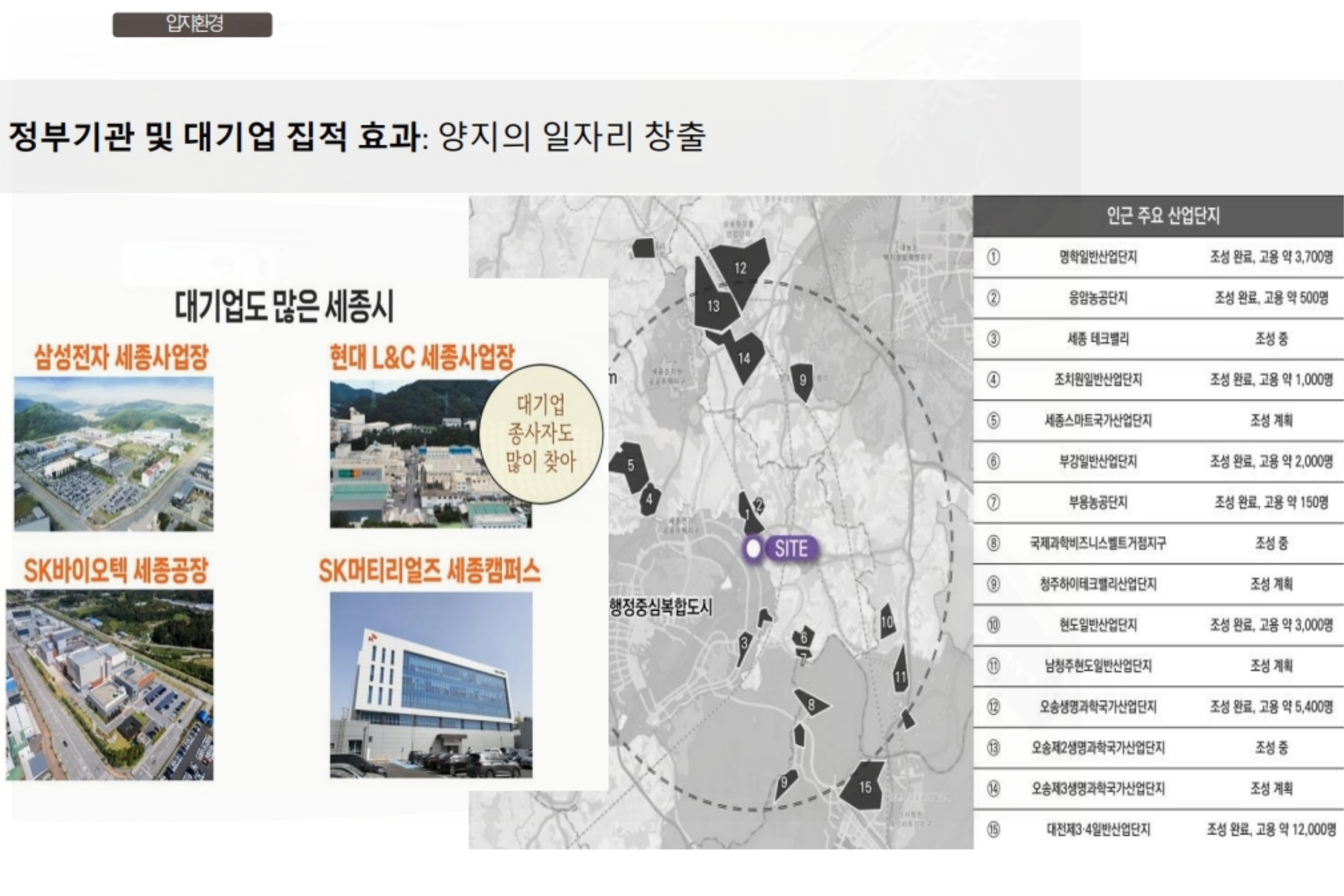 또한 해당 5생활권 아파트는 산업단지와의 접근성도 뛰어납니다. 세종 테크밸리, 명학지구와 명학 일반산단, 조치원 일반산단 등으로 10분 이내에 출퇴근이 가능하여 풍부한 배후 수요를 확보한 직주근접 입지를 갖추고 있습니다.