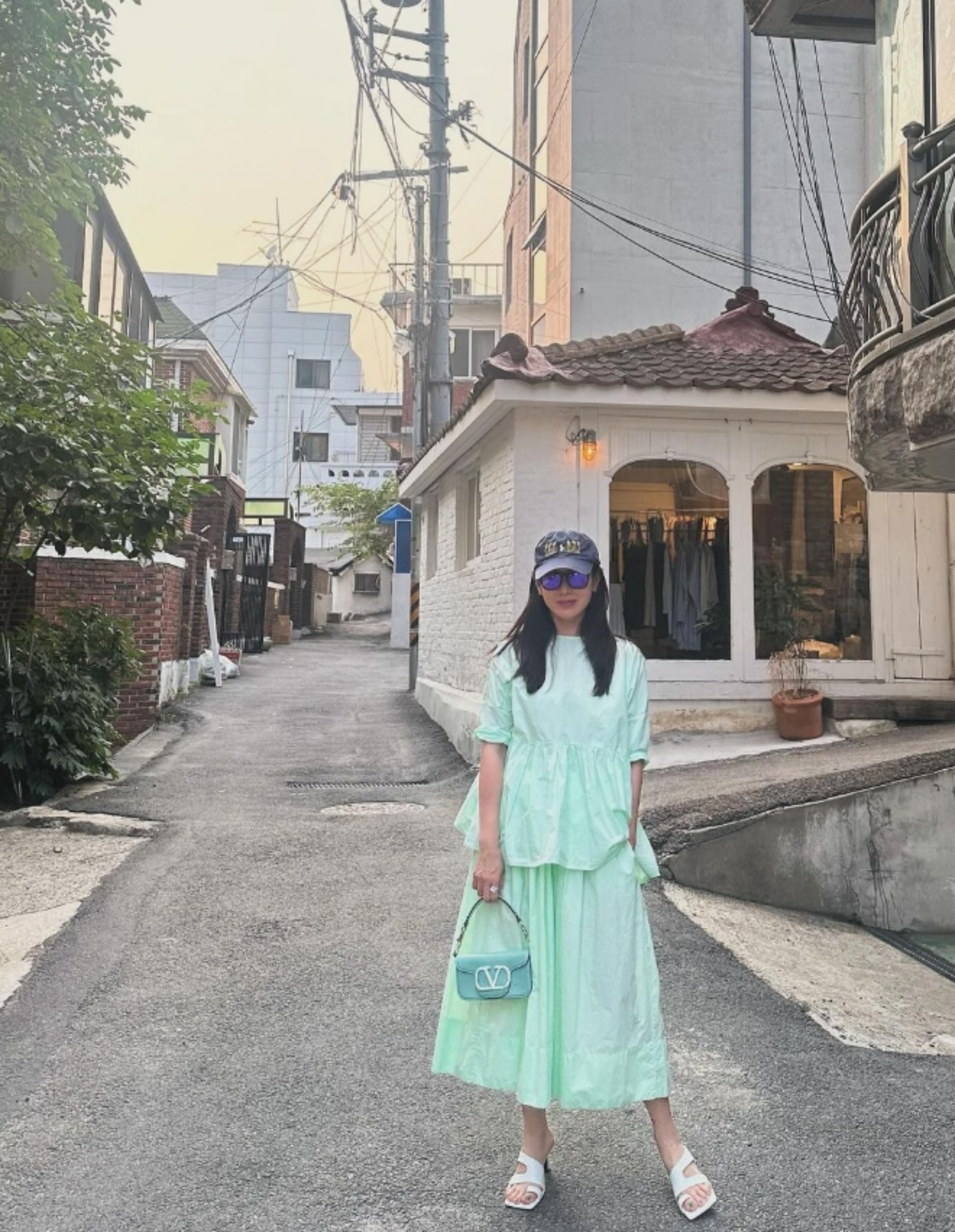 얼마 전 손예진 개인 SNS에 올라온 일명 손예진 민트 원피스 코디 입니다.