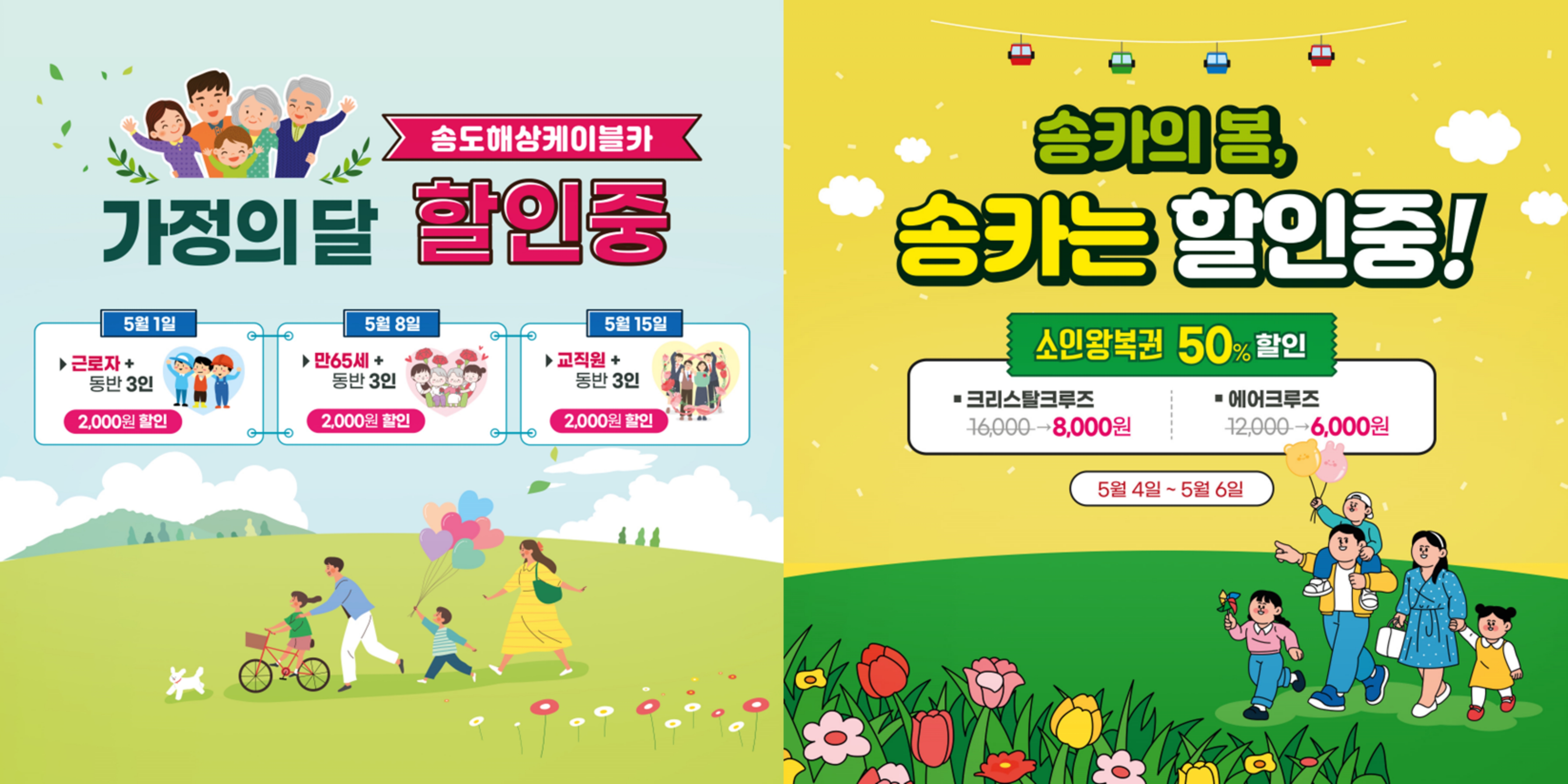 송도해상케이블카가 5월 가정의 달을 맞아 기념일에 맞춘 다양한 할인과 이벤트를 펼친다.