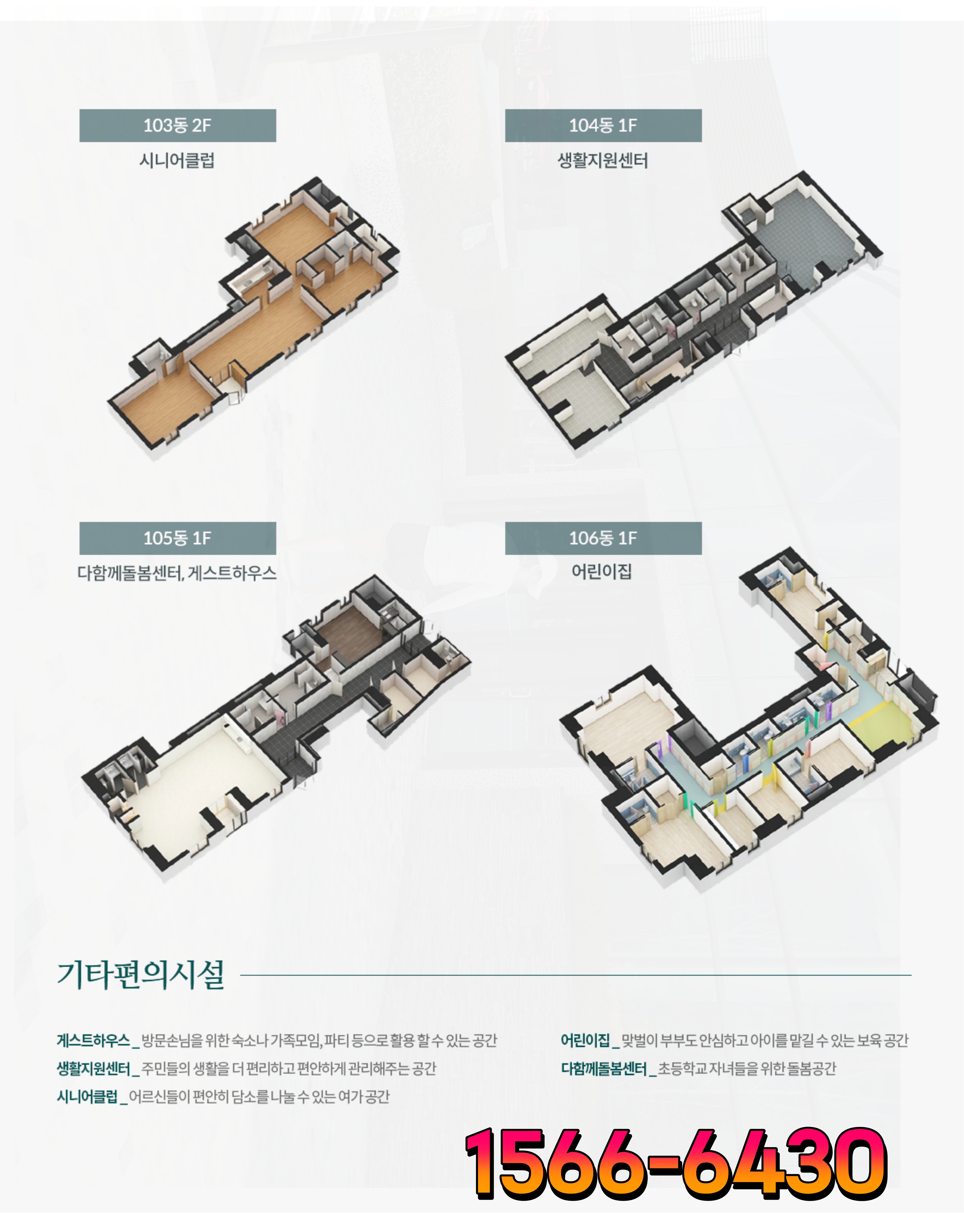 공동시설도 법정 기준보다 4배 이상 큰 1630평 규모로 조성되며, 개별 창고를 마련하여 자주 사용하지 않는 물품들을 별도로 보관할 수 있도록 배려하고 있습니다. 이러한 점은 최근 신축 단지의 트렌드인 수납력 강화를 반영한 것입니다.