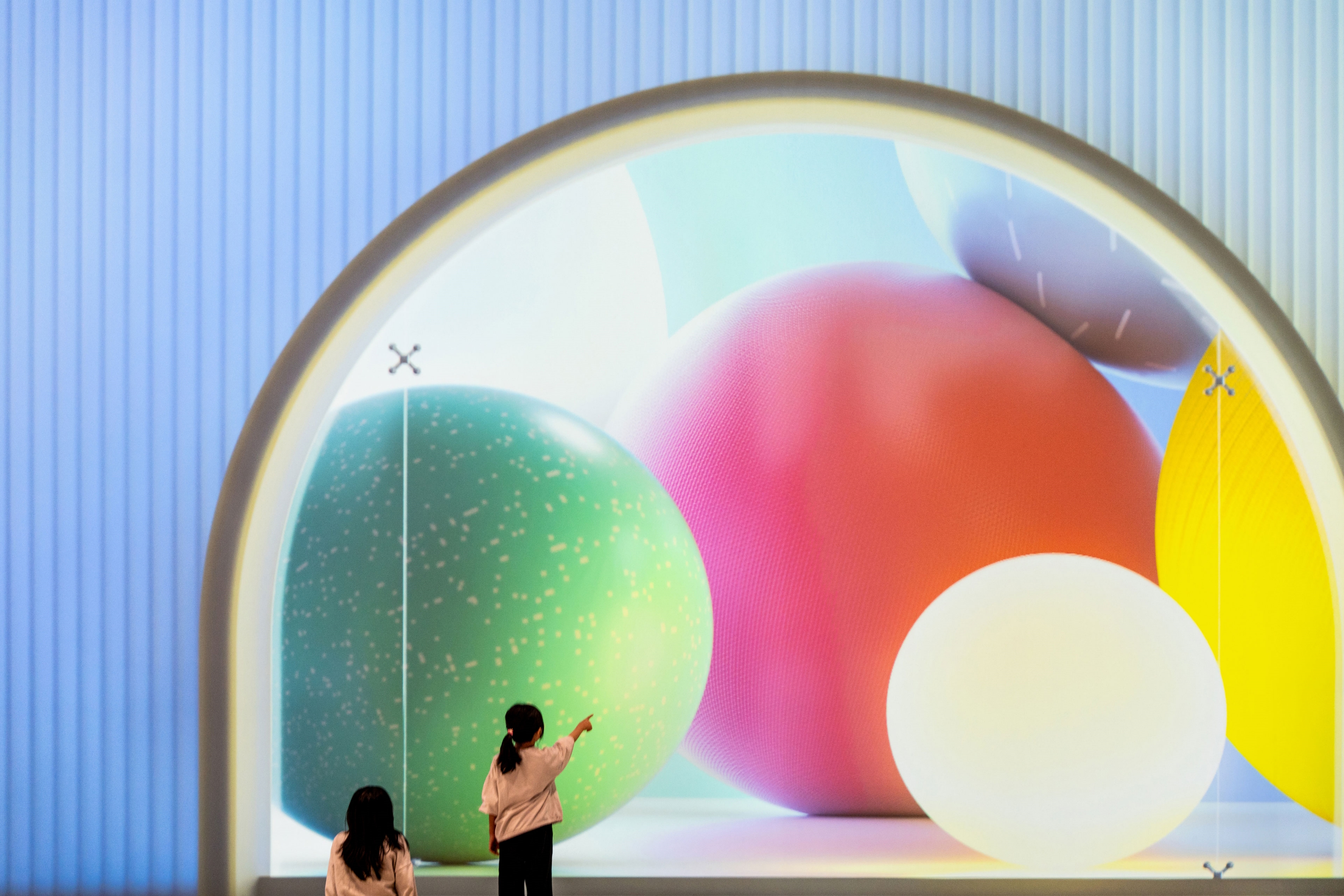 주변을 둘러싼 가로 60m의 초대형 미디어파사드와 크고 작은 놀이 기구로 이루어진 광장, 모래가 깔린 분홍색 해변에서 미디어아트 파도를 밟거나 공룡 화석을 발굴해 볼 수 있는 샌드 비치, 하늘 위를 뛰어오르는 경험을 삼면의 영상과 함께 즐기는 트램펄린 놀이 등 오감과 상상력을 자극하는 다양한 체험 공간으로 구성돼 있다. 보호자를 위한 공간도 마련돼 있다.