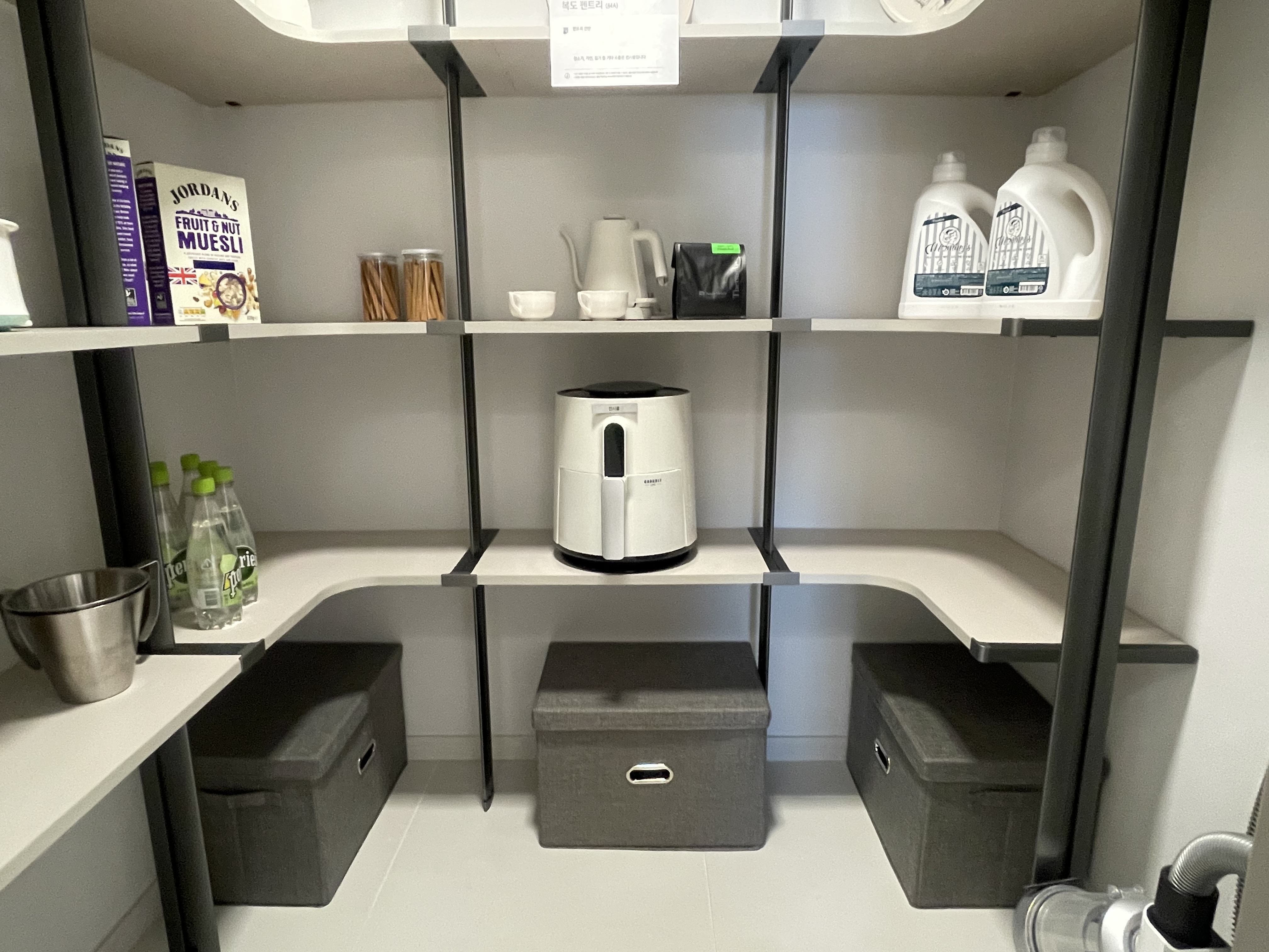 현관으로 이어지는 복도에는 팬트리 공간이 있어서 매우 효율적으로 활용일 가능해 보입니다.