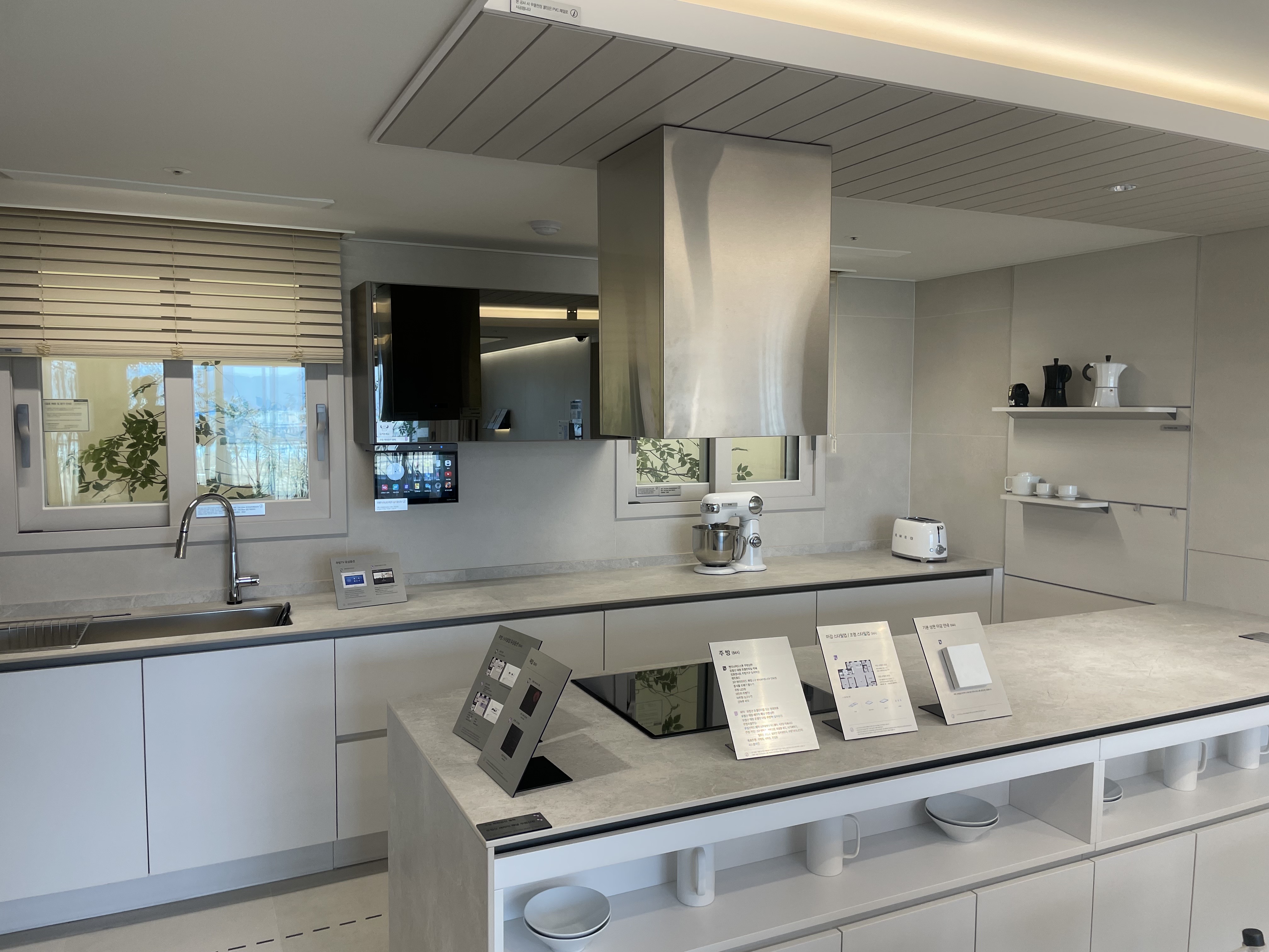 와이드 한 디귿자 구조의 주방은 이동 동선뿐만 아니라 조리 및 수납 등 여러 가지 부분에서 일상생활에 효율적인 활동에 강점을 가지고 있다고 합니다.