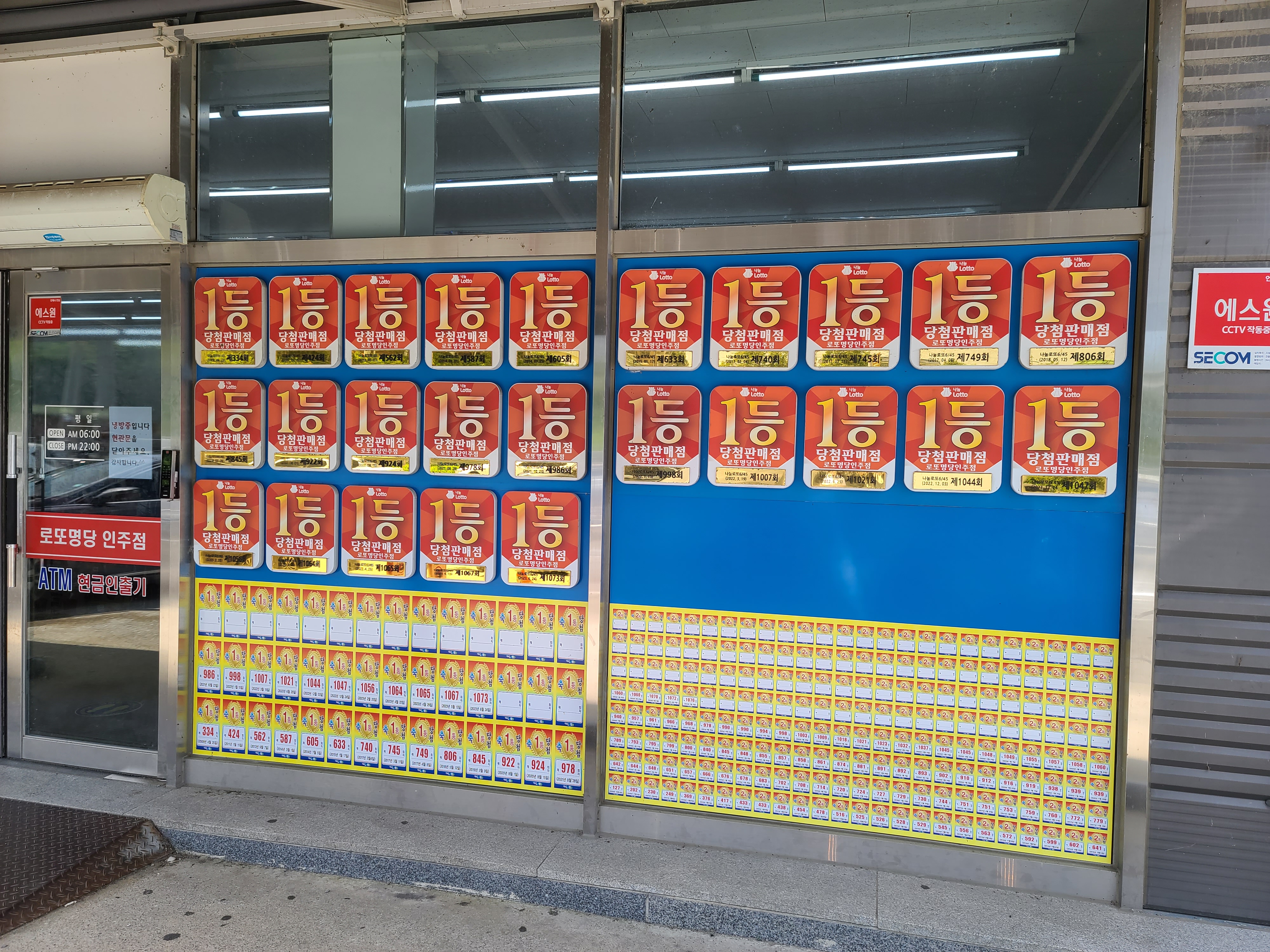 두 달에 한두 번 정도 아산 인주를 지날 일이 있는데 그때마다 꼭 한 장 아니다 두장씩 구매를 하는 로또복권 ^^