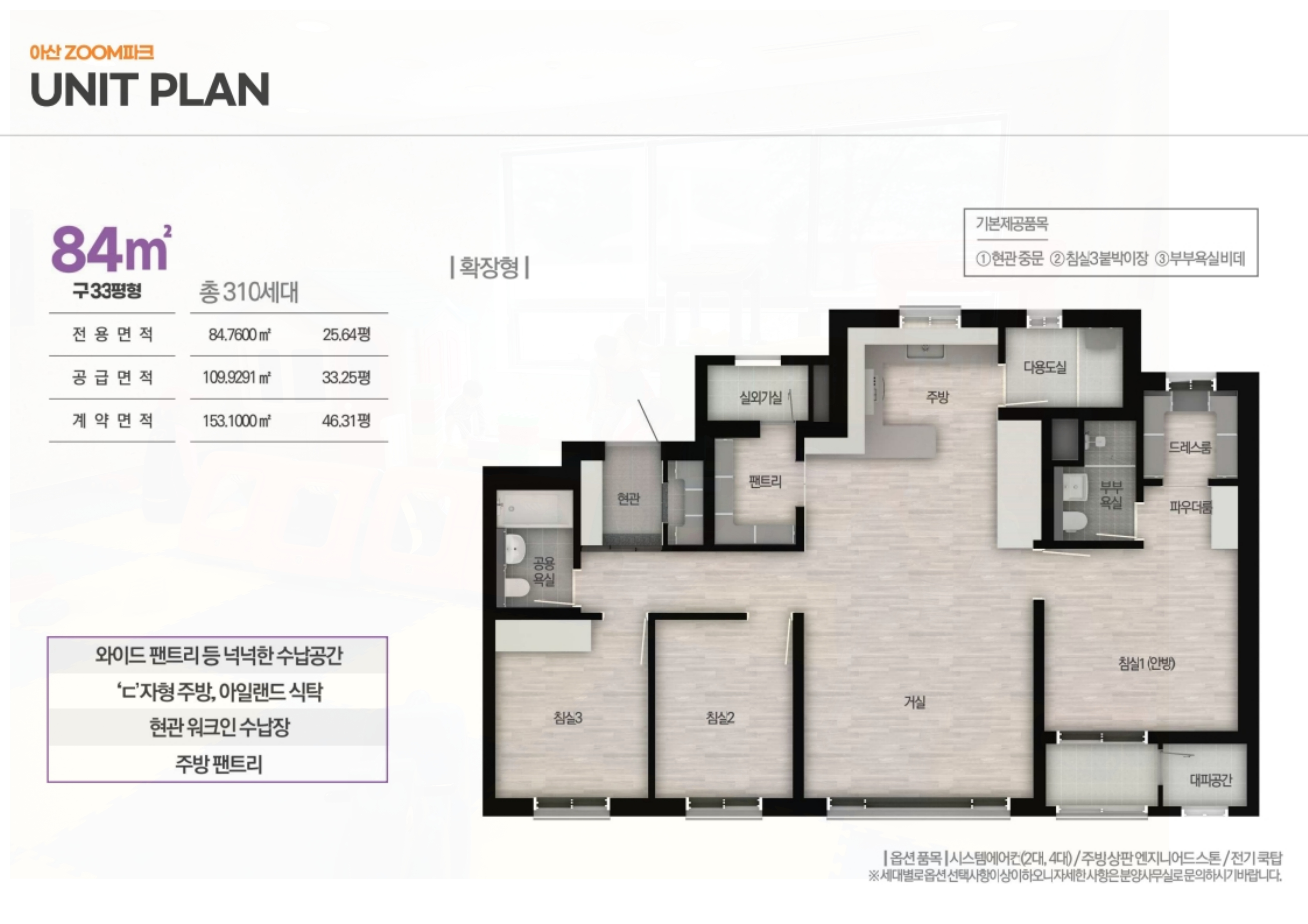 주거 선호도 높은 중소형 평형 구성 아산 줌파크 아파트는 75 타입, 79 타입, 84 타입 등 실수요자들에게 선호도가 높은 중소형 평형으로 구성되어 있습니다.