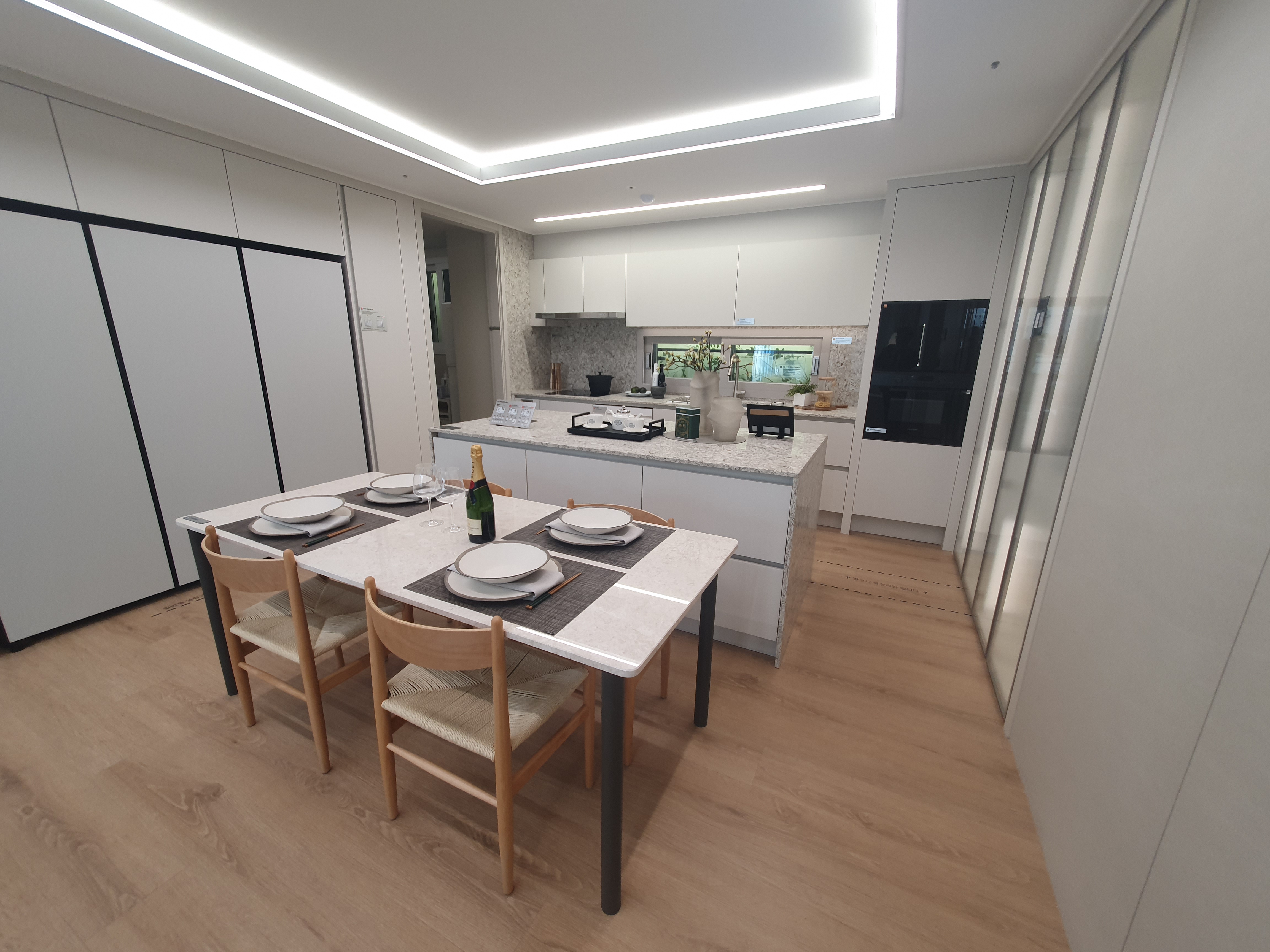 150㎡P 타입: 150㎡P 타입은 보조 거실과 서브 키친이 분화되었고 공용 영역이 넓게 기획되어 대가족이 거주하기에도 매우 적합했습니다.