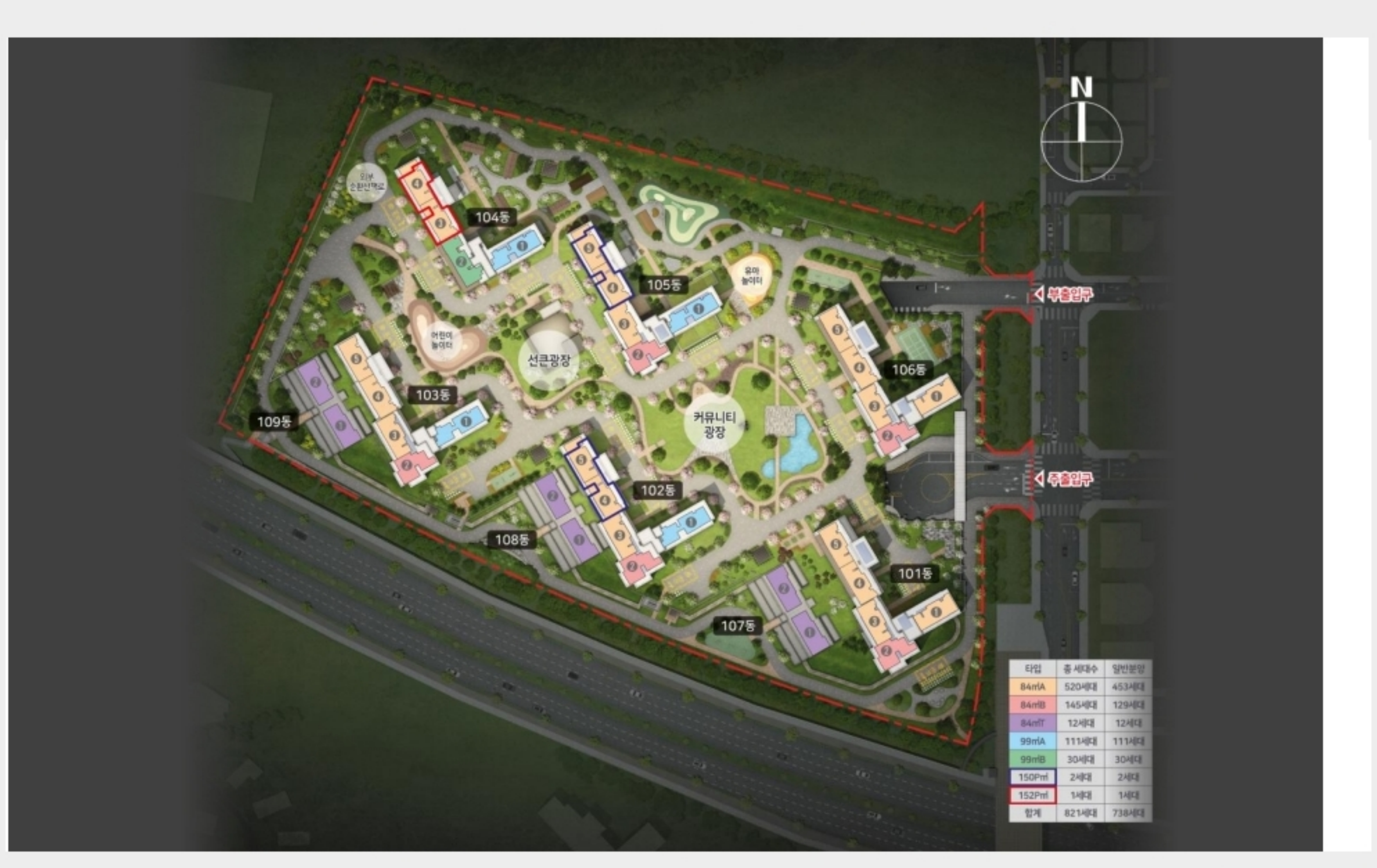 세대수: 이 안에는 공동주택 821세대가 대단지로 공급됩니다. 그중 일반분양 738호와 임대 83가구가 포함되어 있는데요.
