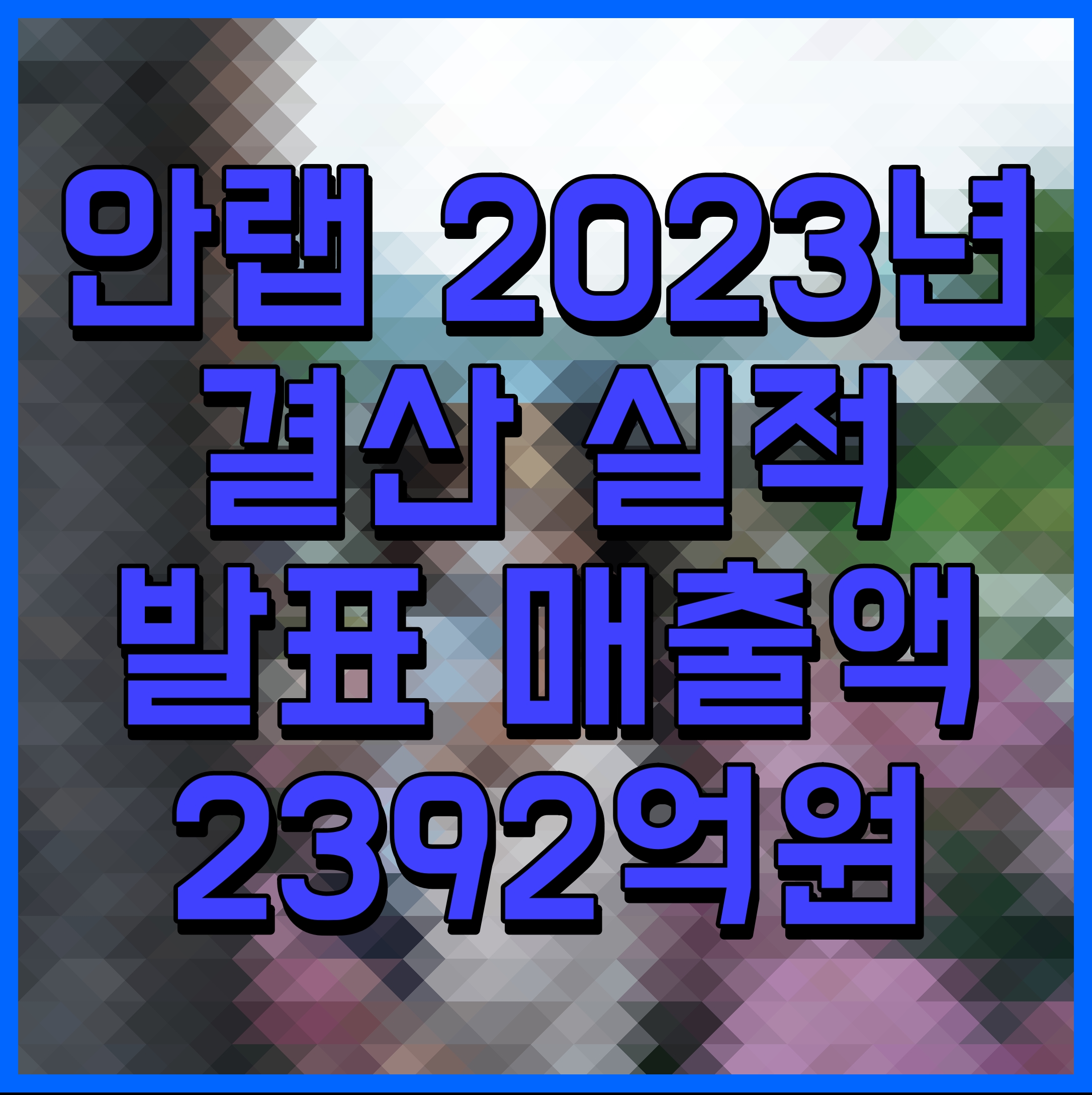 안랩은 연결재무제표 기준 2023년 매출액 2392억, 영업이익 264억, 당기순이익 347억(별도 기준 매출액 2298억, 영업이익 323억, 당기순이익 348억)을 기록했다고 잠정 실적을 공시했다.