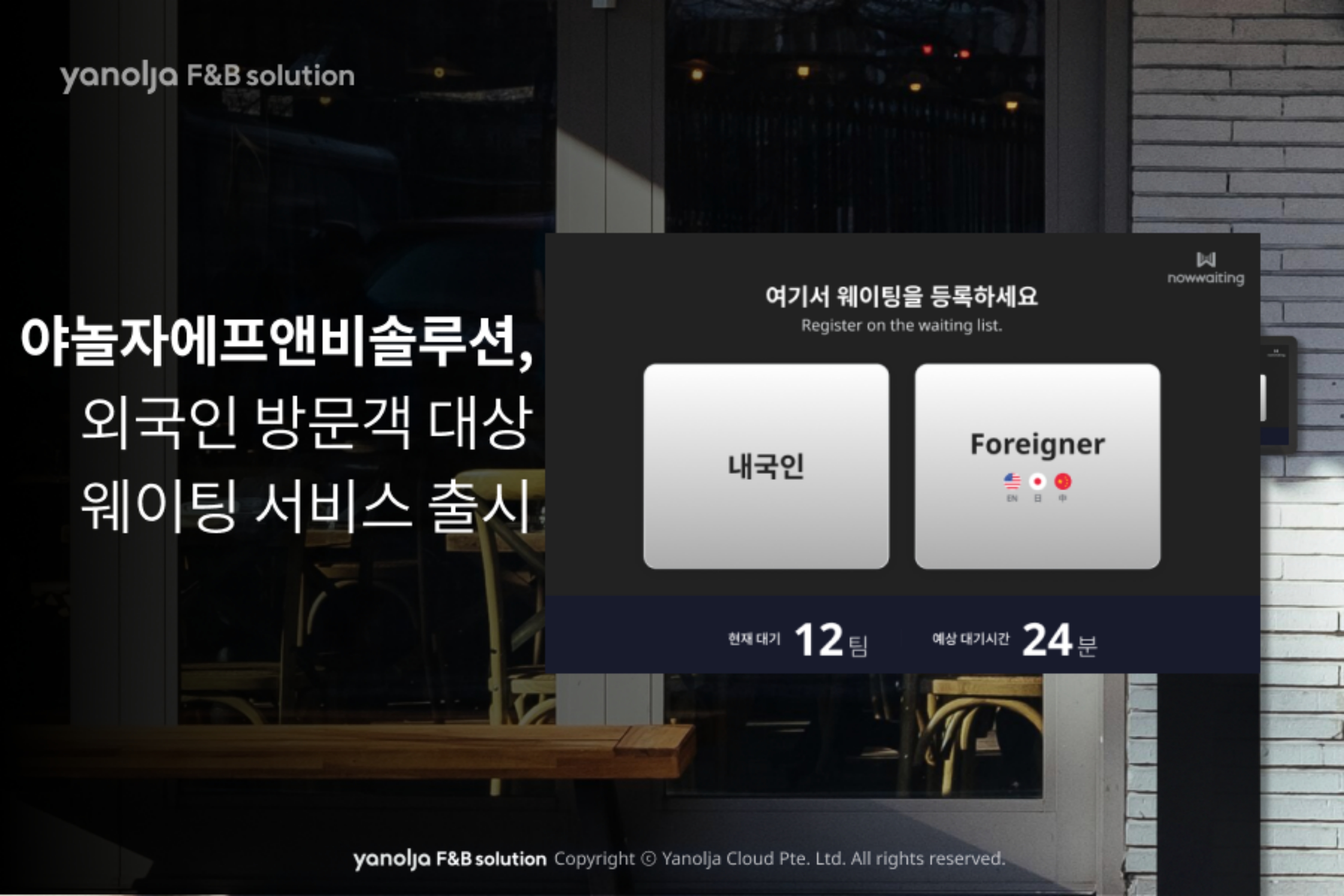 공간의 토탈 디지털 솔루션을 제공하는 야놀자에프앤비솔루션이 11일 나우웨이팅을 통해 외국인 방문객 대상 웨이팅 서비스를 출시했다.
