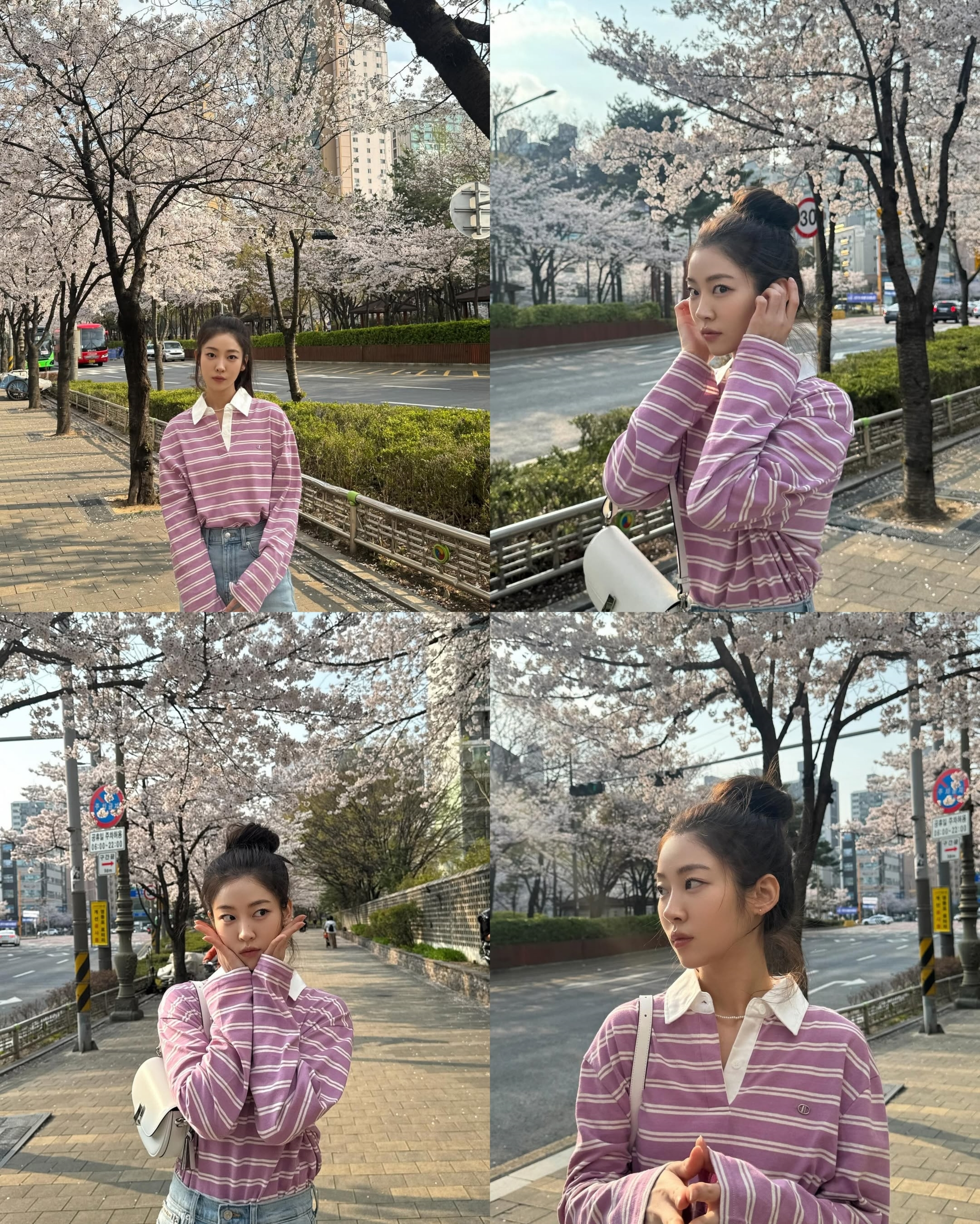 오늘은 봄과 아주 잘어울리는 배우 송지아의 럭비티셔츠 코디 데일리룩을 한번 살펴볼게요.