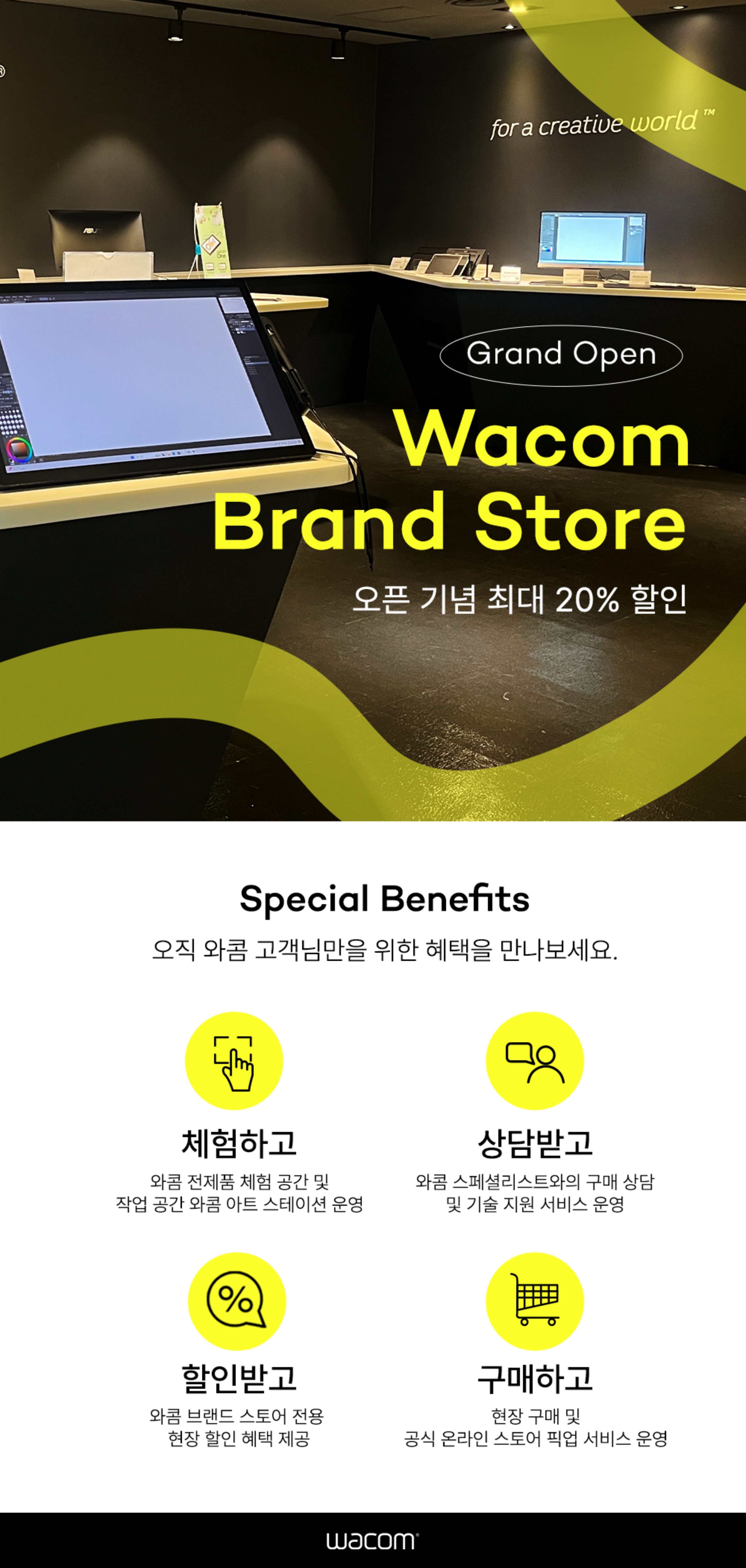 한편, 와콤 브랜드 스토어 및 와콤 서비스 센터에 대한 자세한 사항은 와콤 블로그에서 확인 가능하다.
