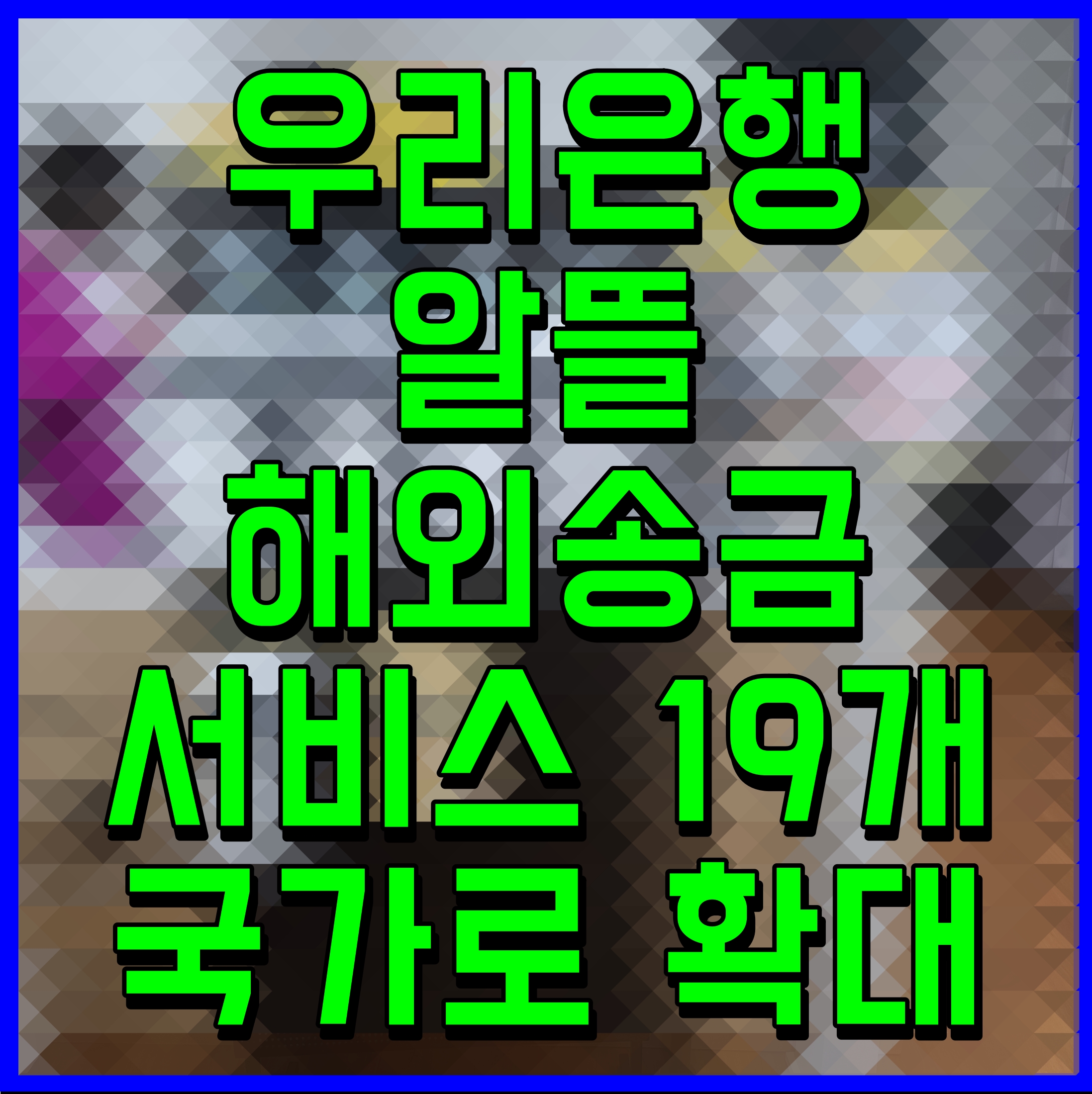 우리은행은 알뜰 해외송금 서비스 대상 국가를 기존 9개 국가에서 19개 국가로 확대했다.