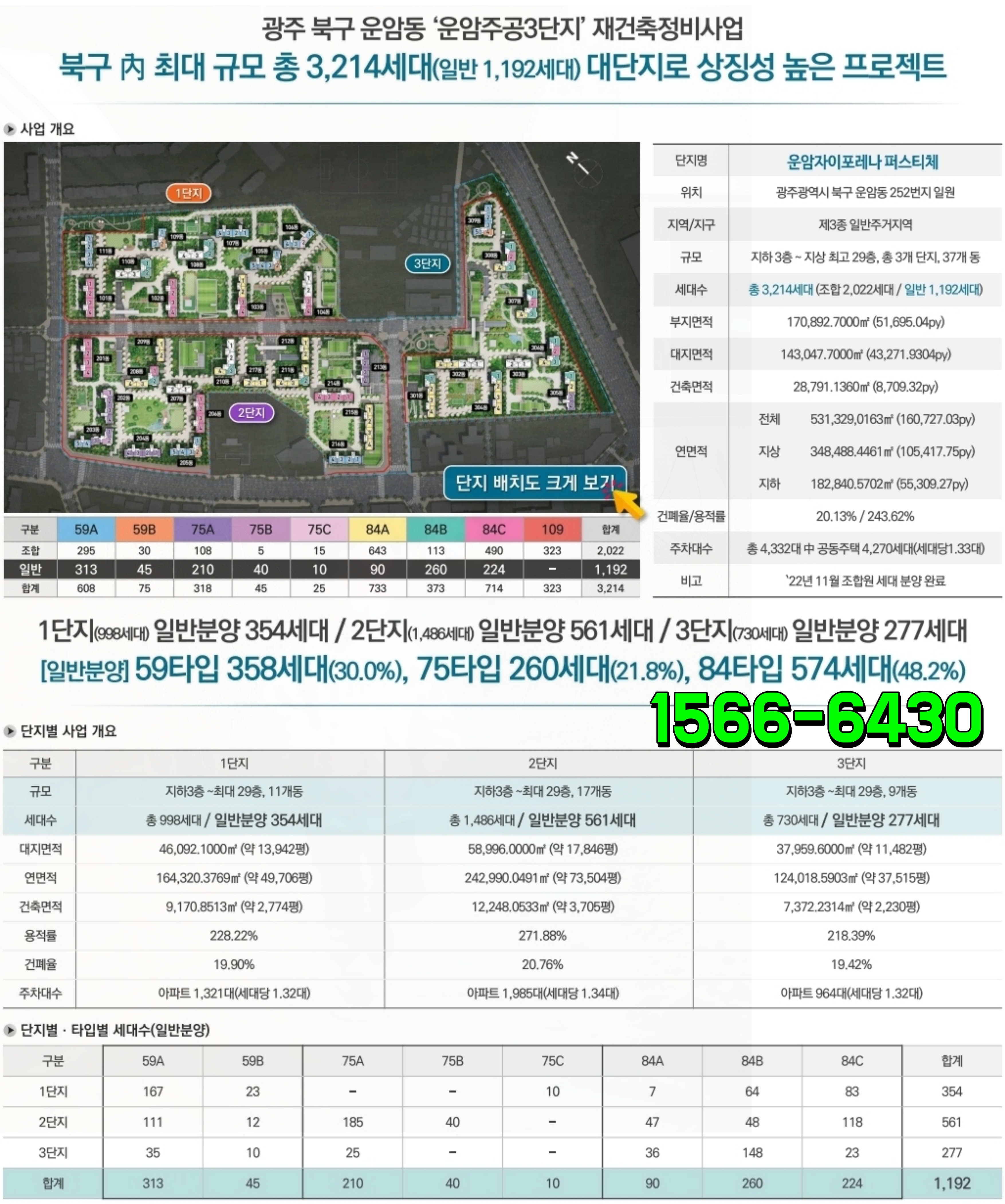 이곳은 운암주공 3단지 재건축 프로젝트로 이루어진 현장인데요. 일반분양으로 풀린 물건은 1,192세대로 60%가량은 실주거의 조합원들에게 기공급 된 이후이기 때문에 가치 상승을 높이는데 중요한 요소가 될 것 같습니다.