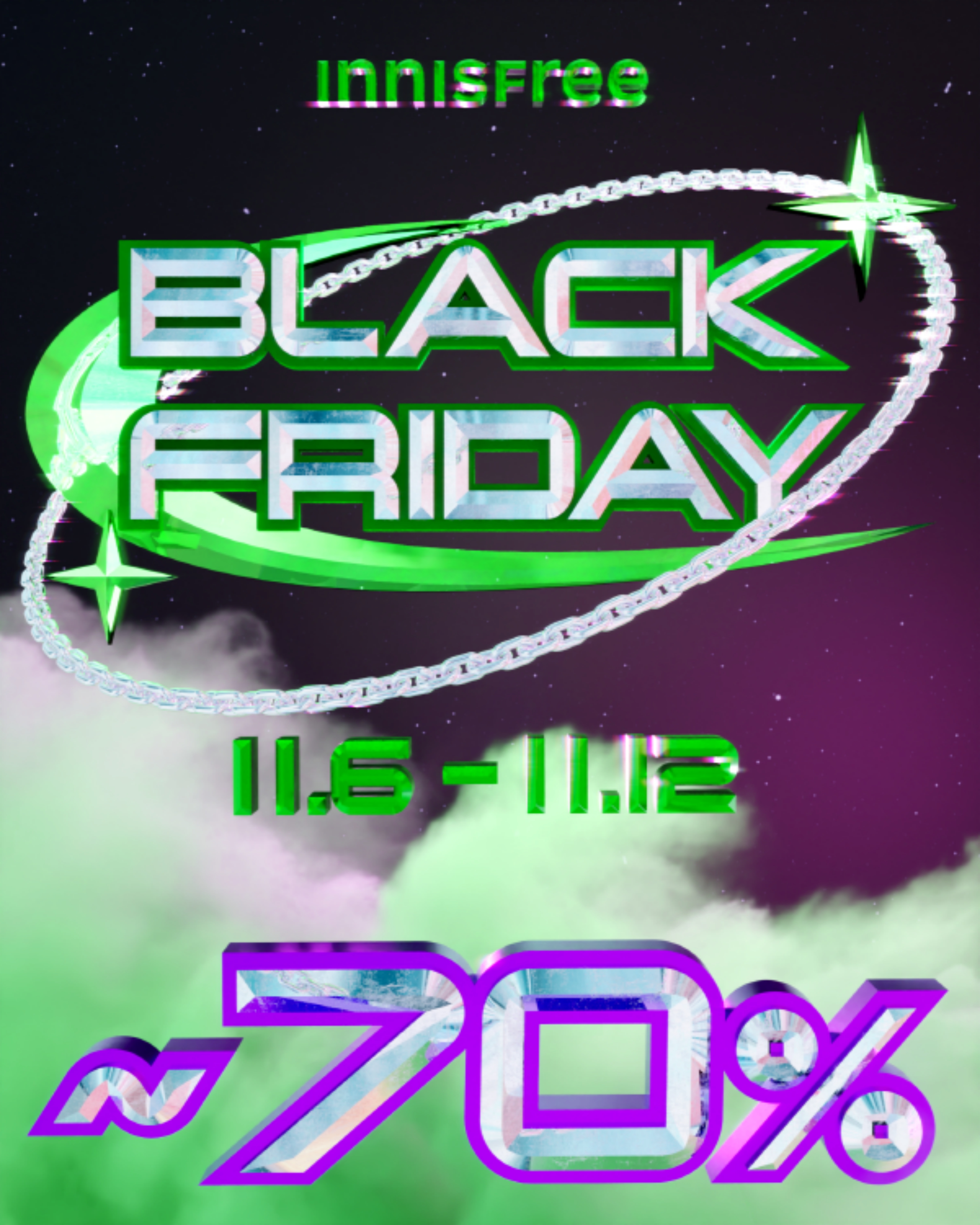 1년에 단 한 번 진행되는 이니스프리 블랙 프라이데이 세일을 통해 이니스프리 회원에게 최대 70% 할인 혜택을 제공하는 다양한 프로모션을 전개한다.